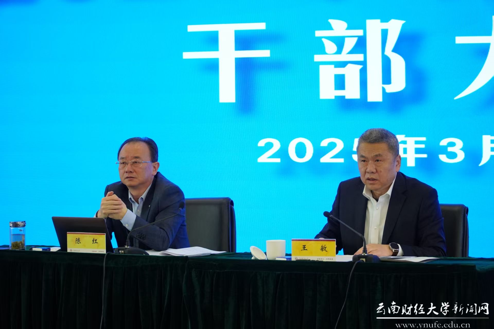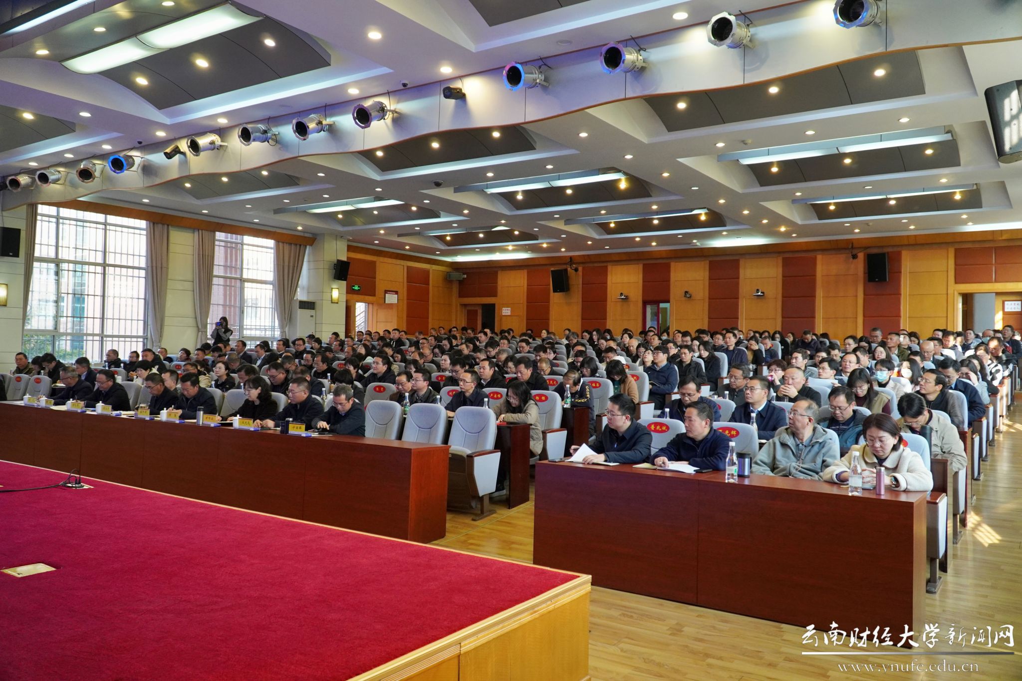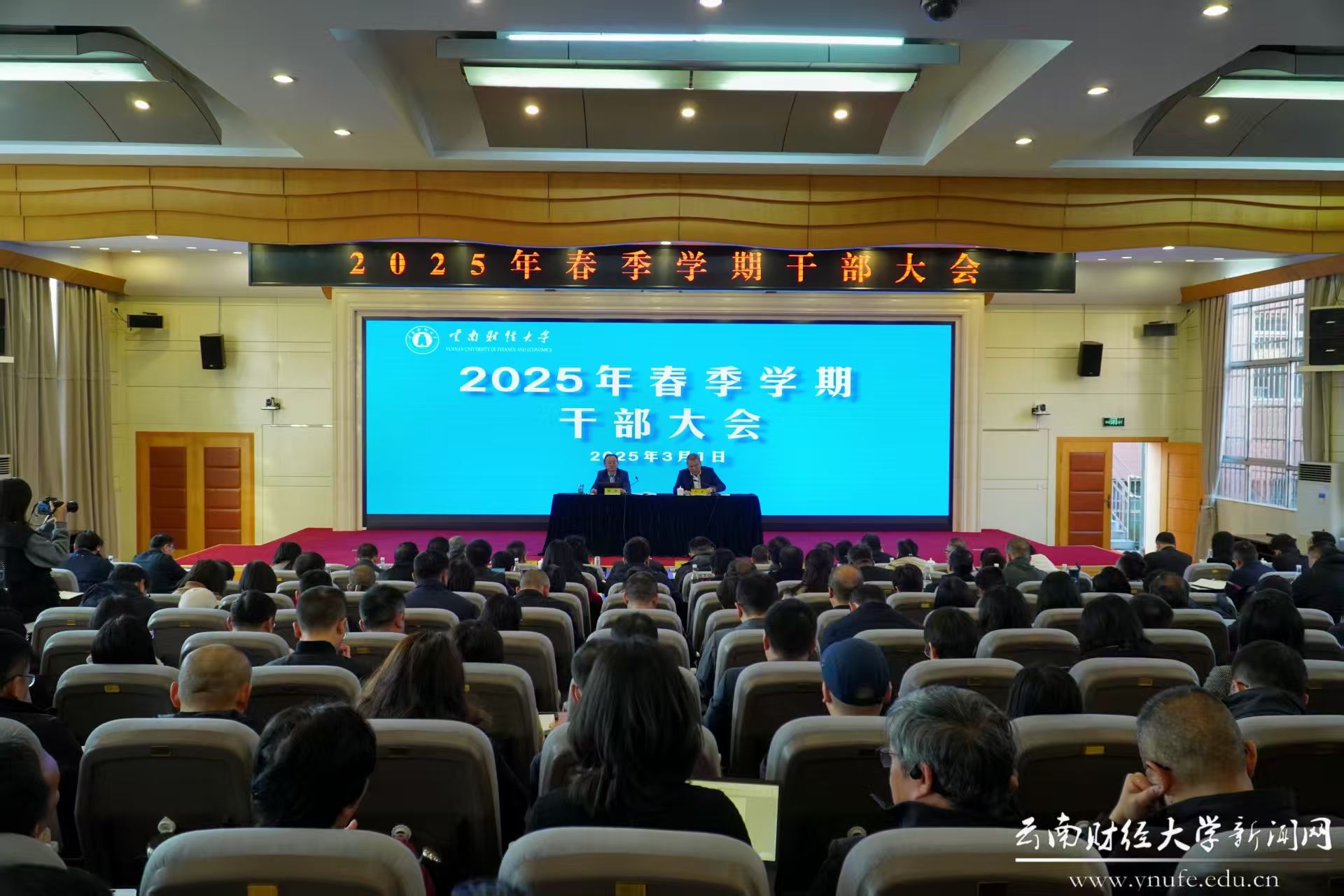 3月1日上午,beat365英国官方网站召开2025年春季学期干部大会,深入学习贯彻党的二十大和二十届二中、三中全会精神,习近平总书记关于健全全面从严治党体系的重要论述、关于教育的重要论述和考察云南重要讲话精神,认真落实全国教育大会和省委十一届七次全会、全省教育大会、全省教育工作会议精神,以奋进之姿,紧扣“三个定位”,锚定省委“3815”战略发展目标和学校“1186”战略任务,全面总结学校2024年工作,分析目前形势,安排部署2025年重点任务,为全年工作开好头、起好步,奋力推进高水平财经大学建设各项工作。