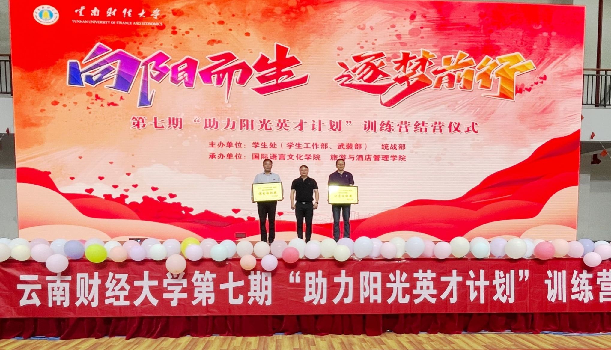 学生处副处长王帅宣读“助力阳光英才计划”训练营优秀学员名单,国际语言文化学院党委书记杨秀伟、旅游与酒店管理学院党委副书记李永祥为优秀营员、优秀工作人员颁发奖状,优秀学员代表蓝嘉豪分享了参加训练营的心得体会。