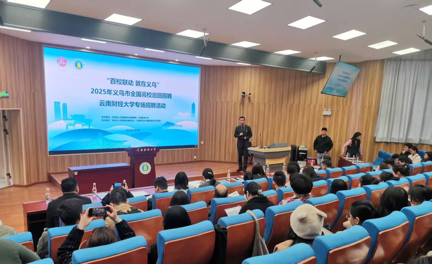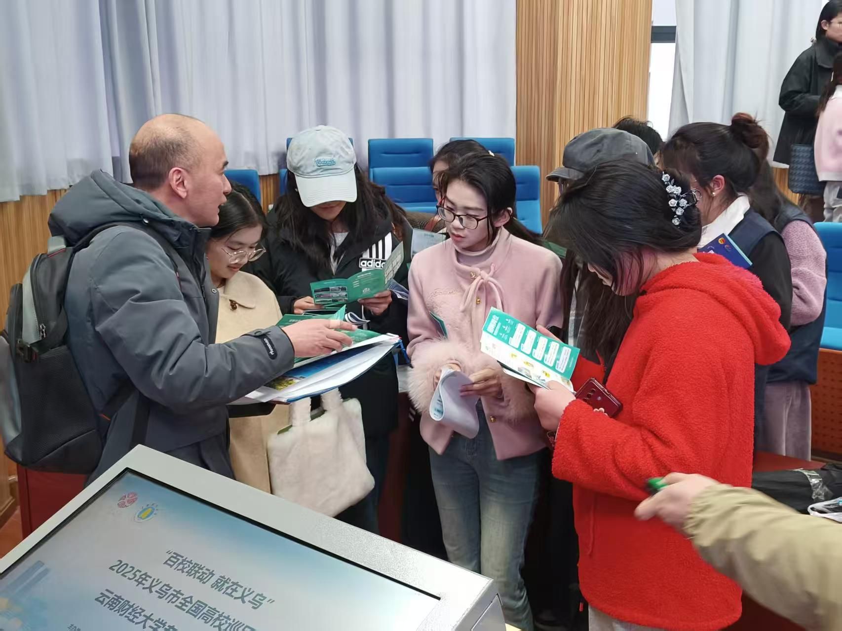 义乌市委组织部、工商联、人社局、团市委等有关单位负责人,学校招生与职业发展中心、国际语言文化学院等部门负责人参加座谈和招聘活动。