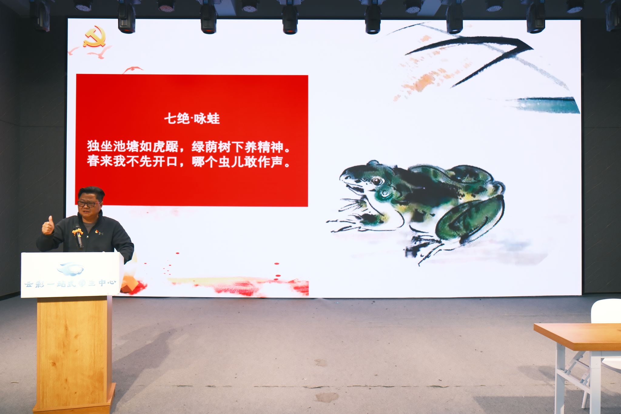 张国政以毛泽东诗词为脉络,系统梳理党的光辉历程。从少年时期《七绝·改诗赠父亲》的报国志向,到大革命时期《沁园春·长沙》“问苍茫大地,谁主沉浮”的时代叩问;从井冈山斗争时期《西江月·井冈山》“敌军围困万千重,我自岿然不动”的革命豪情,到长征路上《忆秦娥·娄山关》“雄关漫道真如铁”的光辉历程,生动再现了中国共产党人百折不挠的精神品格和筚路蓝缕的奋斗史诗。在两个小时沉浸式讲授中,他不仅解析诗词的文学价值,更深入阐释其中蕴含的理想信念、斗争精神与人民情怀,为在场老师们提供了鲜活的思政教育素材。