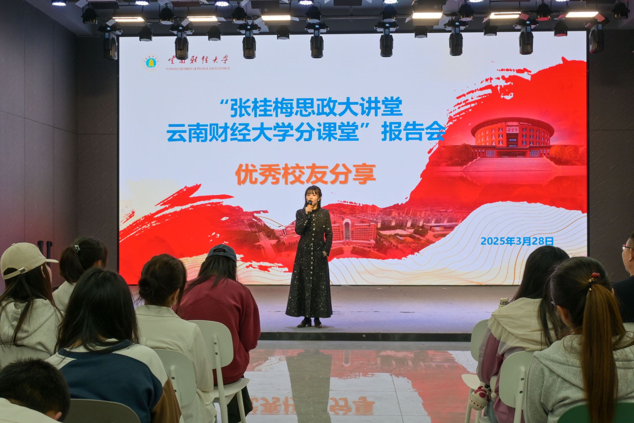 为深入贯彻落实立德树人根本任务,积极响应学校“三进一出”倡议,加强学风建设,3月28日,“张桂梅思政大讲堂beat365英国官方网站分课堂”报告会在云彩“一站式”学生中心举行。本次活动由学生处、宣传部主办,法政学院、物流与管理工程学院共同承办,法政学院优秀校友莫梦琳受邀主讲。学生处副处长王帅主持活动。