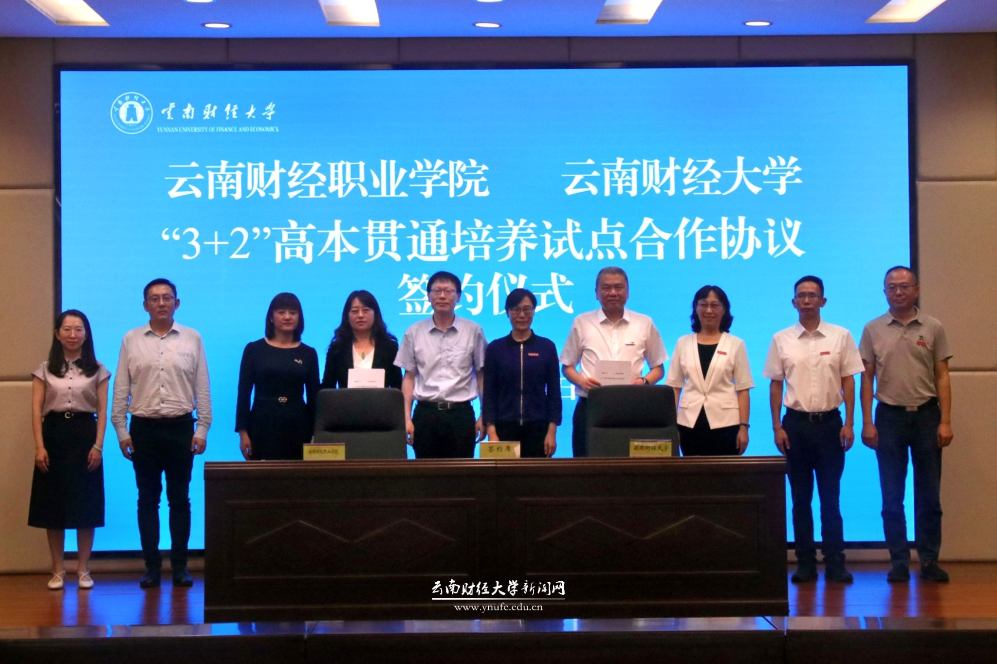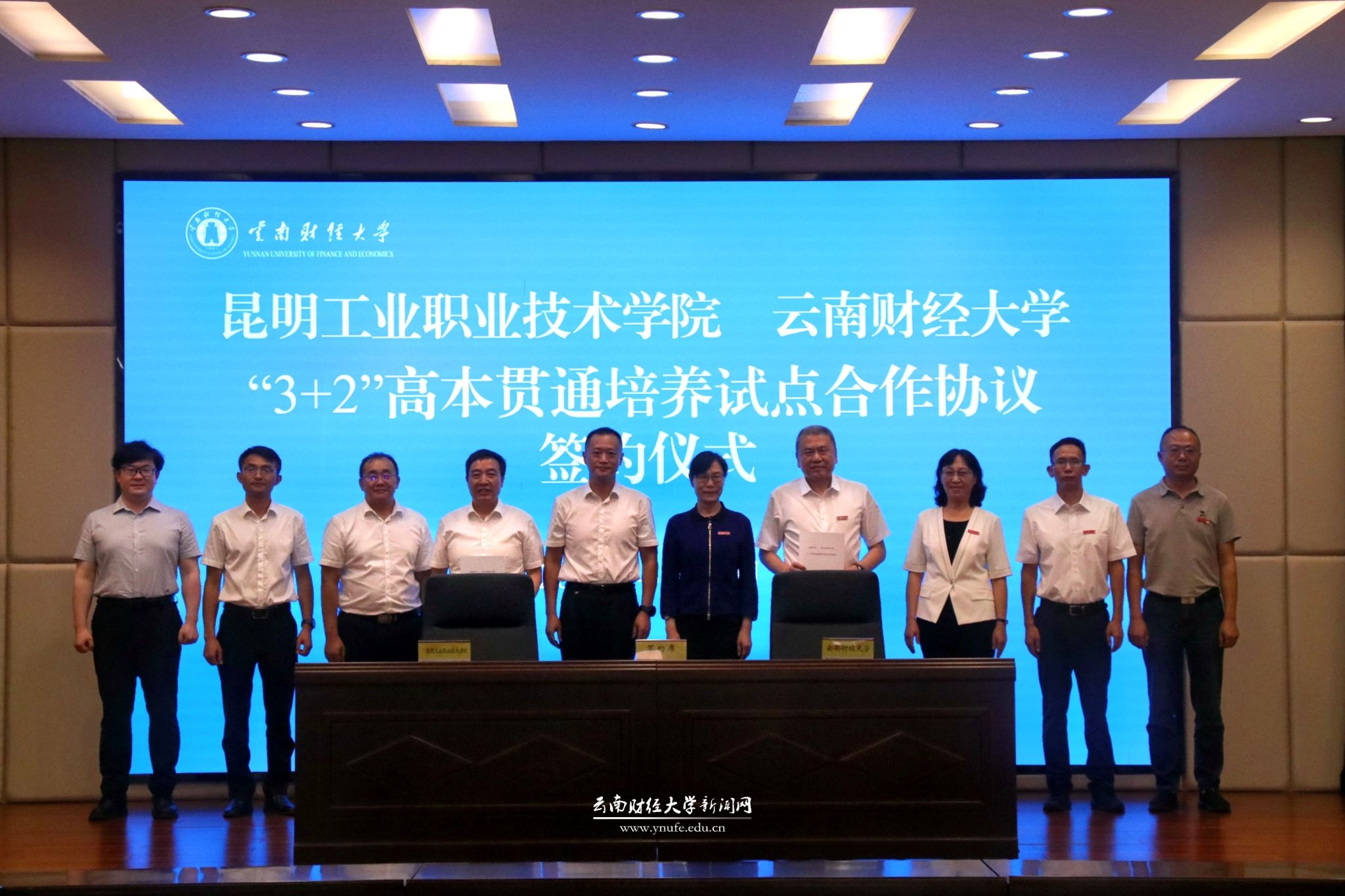 王敏代表学校分别与云南财经职业学院校长邹丽、昆明工业职业技术学院校长刘伟签署了《“3+2”高本贯通培养试点合作协议》。