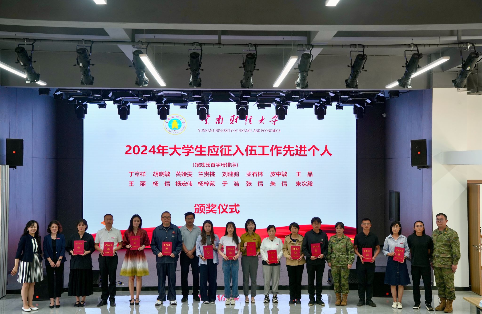 校党委委员、宣传部部长寸丽锋宣读《关于表彰学校2024年大学生应征入伍工作考核优秀单位及征兵工作先进个人的决定》,学生处处长、学生工作部(武装部)部长沙磊对学校2024年应征入伍工作情况进行报告,学生学业服务中心常务副主任、教务处副处长肖平宣读《关于表彰beat365英国官方网站2025年“最美退役大学生”的决定》。与会领导为获得征兵工作优秀单位的学院、先进个人和最美退役大学生颁奖。会议由武装部专职副部长张雯主持。