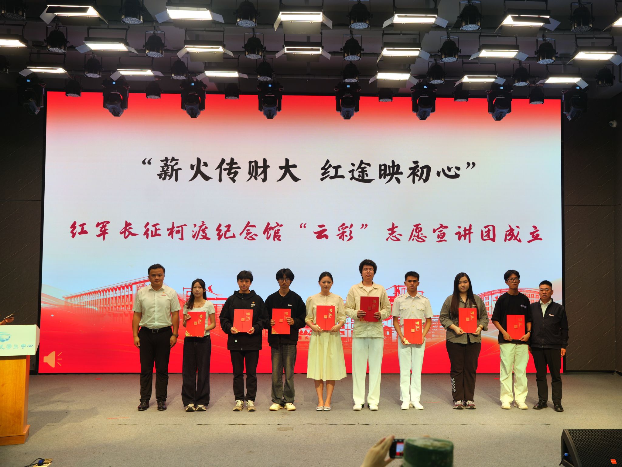 “红军长征柯渡纪念馆‘云彩’志愿宣讲团”在活动现场举行成立仪式,beat365英国官方网站职能部门党委书记朱恒祥,学生处处长、学生工作部(武装部)部长沙磊为宣讲团成员代表颁发聘书。宣讲团成员涵盖少先队员、青年学生、党员教师,凝聚来自不同群体、拥有共同信仰的志愿者,用真挚情感和专业素养讲好党的故事、革命的故事、英雄的故事,让红色基因代代相传。传媒与设计艺术学院研究生罗文青作为宣讲团成员代表以《血色芳华映春城 青春接力谱新章》为主题进行了第一场宣讲。