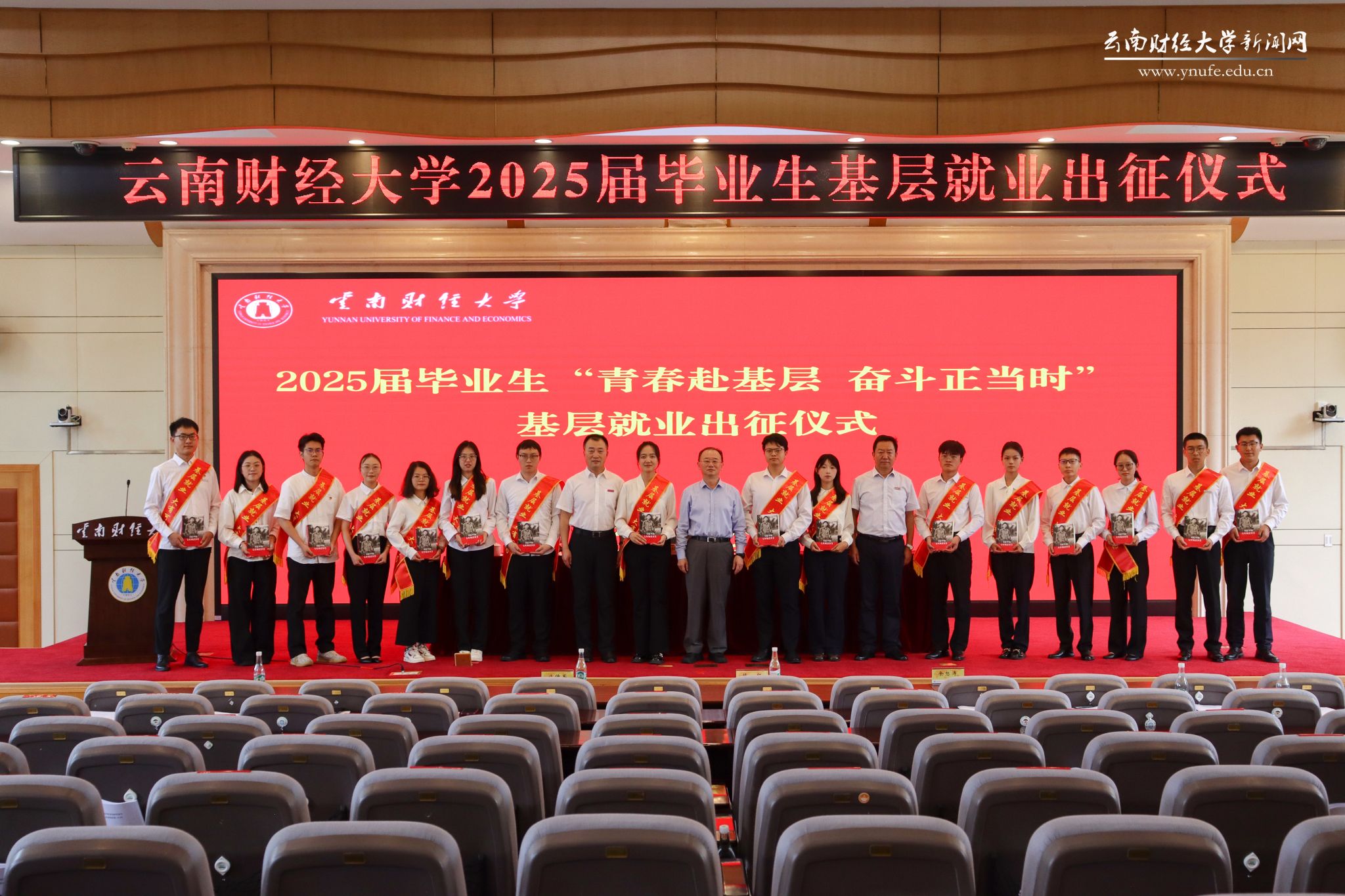 仪式上,校领导为15名基层就业毕业生代表赠送《习近平的七年知青岁月》一书,激励青年学子从领袖的青春奋斗历程中汲取智慧和力量,走好新时代的长征路。