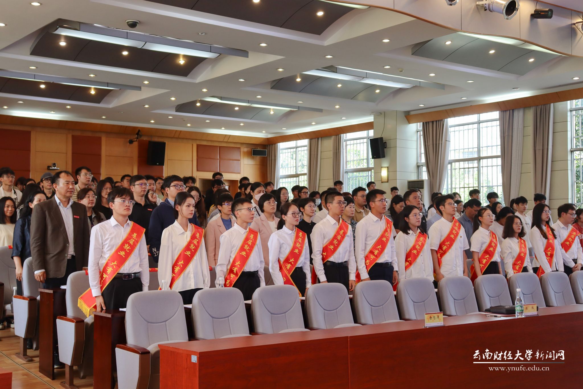 学校组织部、宣传部、学生处、教务处、研究生院、校团委、招生与职业发展中心等部门负责人,各学院党委副书记、就业专干以及学生代表200余人参加活动。