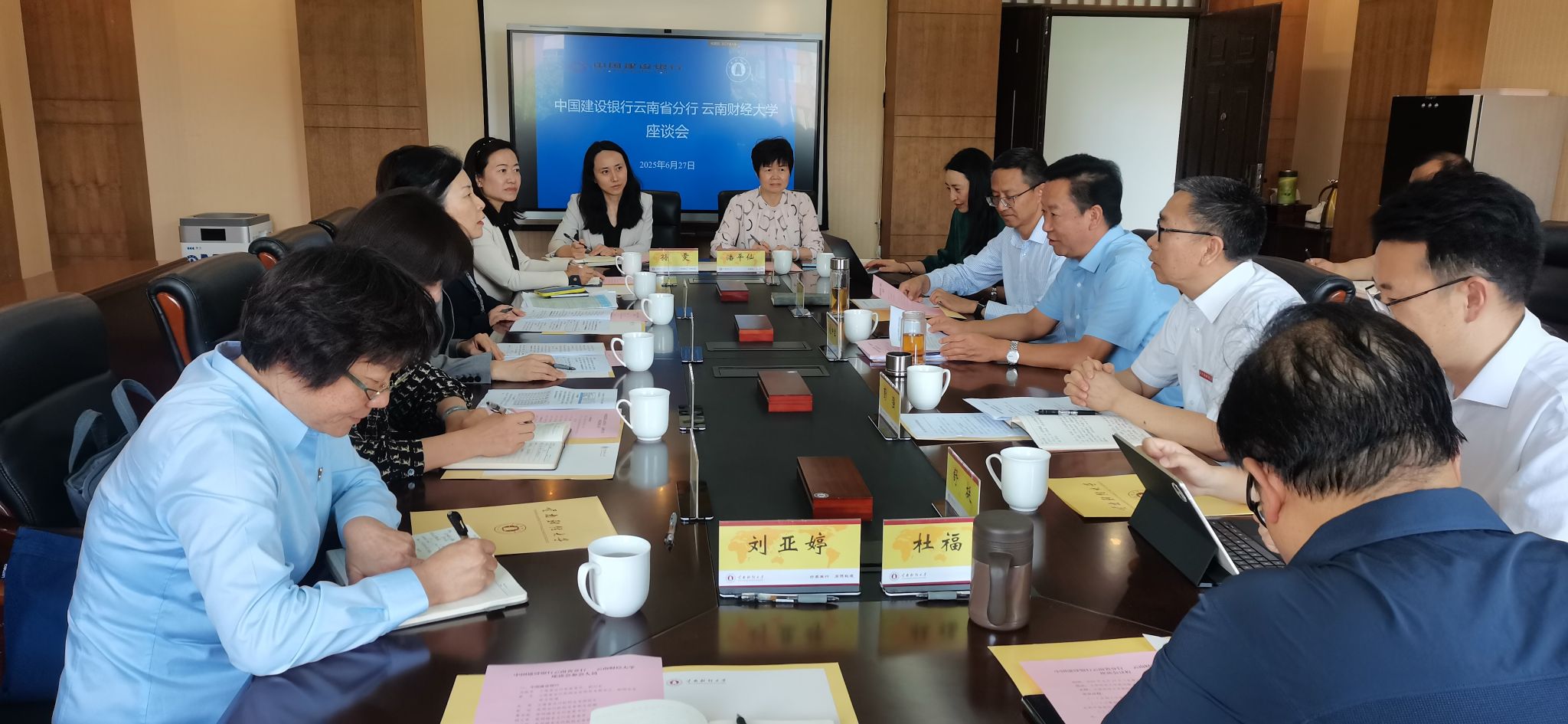 建行云南省分行机构业务部、昆明分行机构业务部、昆明城东支行和学校财务处、校团委、社会合作办公室(校友工作办公室)负责人及有关人员参加座谈。