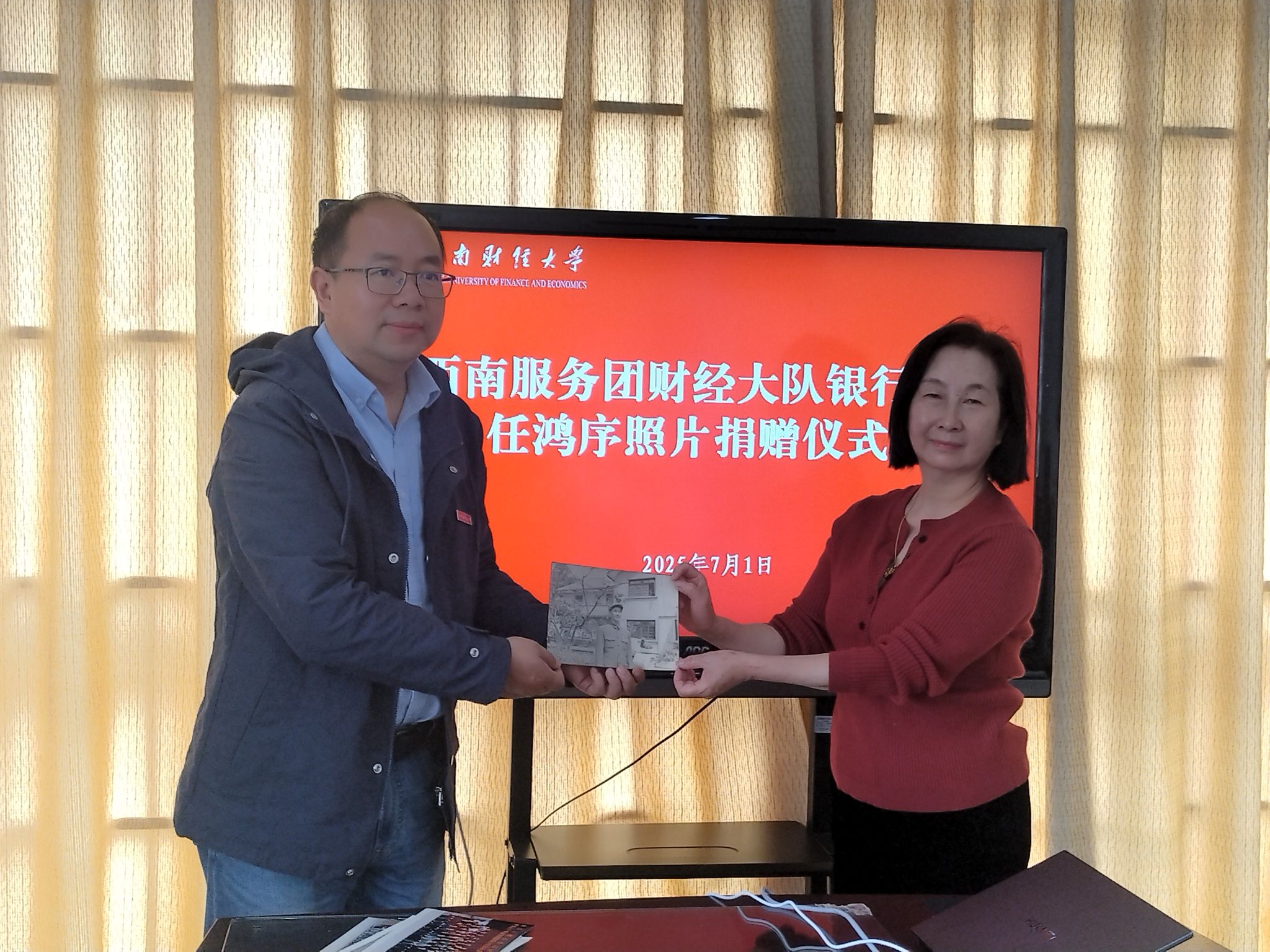 7月1日下午,原西南服务团财经大队银行队队员任鸿序的女儿任红梅女士到校,向beat365档案馆捐赠了其父的10余张老照片及其亲笔撰写的个人简历、个人总结等珍贵资料。