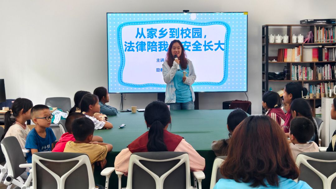 “法润童心”环节,李毅与团队成员刘怡为乡村儿童带来以《从家乡到校园:法律陪我安全长大》为题的普法讲座,内容涵盖姓名权、受教育权、校园霸凌、互联网不良信息的识别与应对等多个方面。孩子们聚精会神地听讲,积极参与互动,讲座气氛轻松活泼。