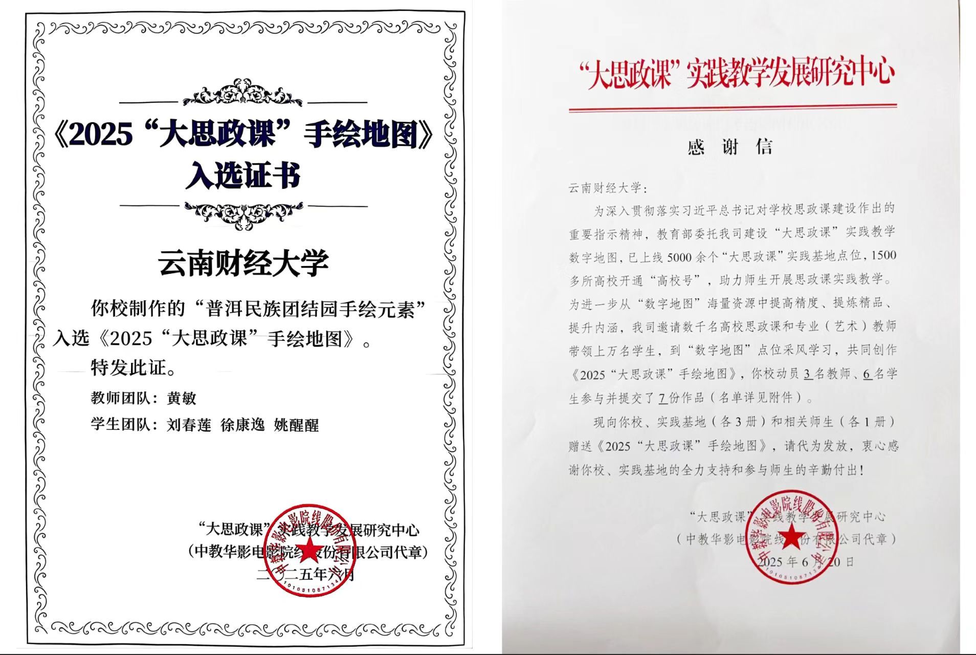近日,教育部正式公布了《2025“大思政课”手绘地图》作品入选名单,beat365传媒与设计艺术学院教师黄敏指导学生团队设计制作的作品“普洱民族团结园手绘元素”成功入选,充分体现了学校“大思政课”建设的育人成效。