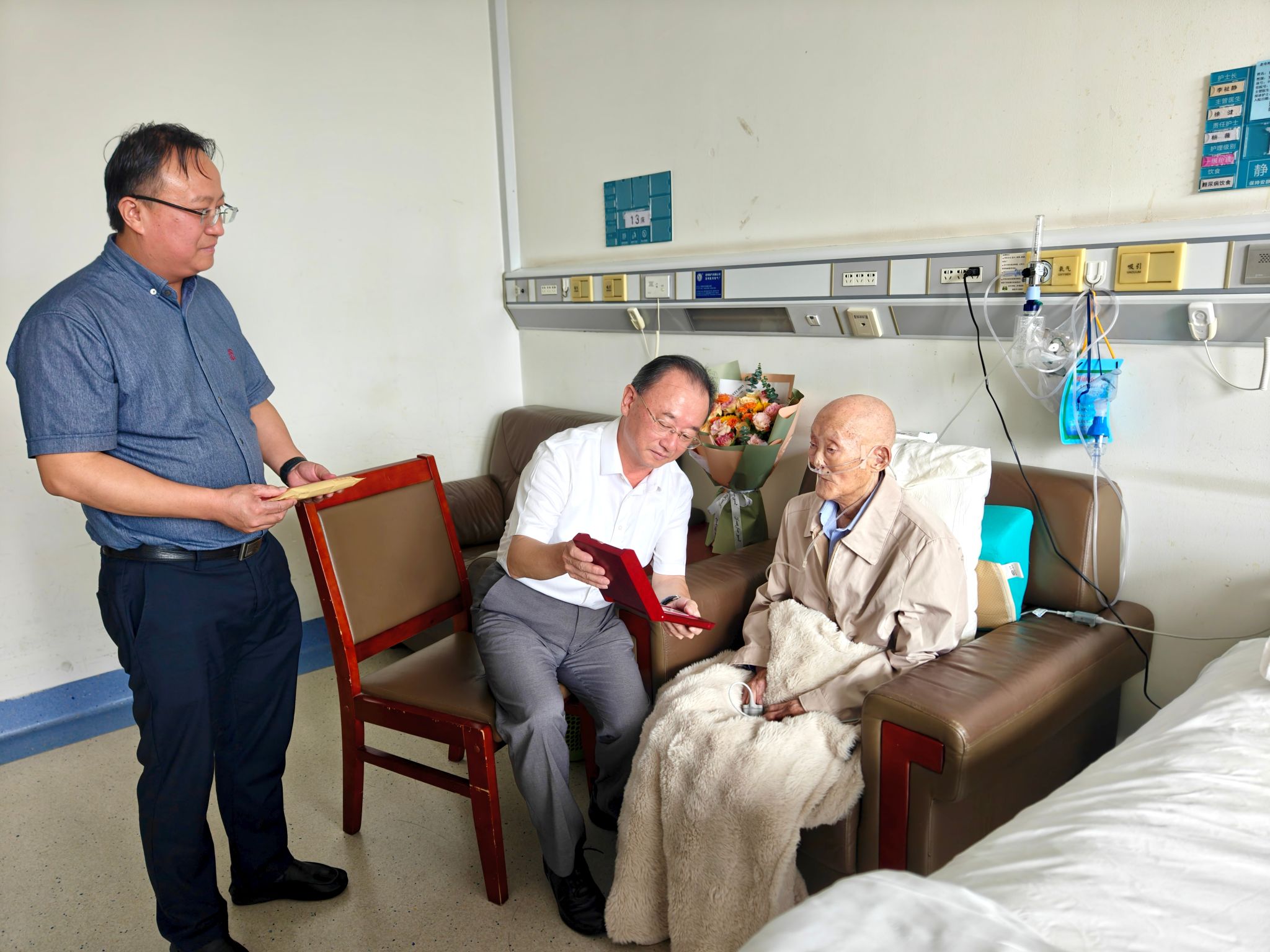 在纪念中国人民抗日战争暨世界反法西斯战争胜利80周年之际,为弘扬伟大抗战精神,传承红色基因,表达对革命前辈的崇高敬意,近日,校党委书记陈红和副校长颜明一行专程来到医院,看望慰问了离休老教师向林同志,为其颁发“中国人民抗日战争胜利80周年”纪念章,并发放一次性生活补助。