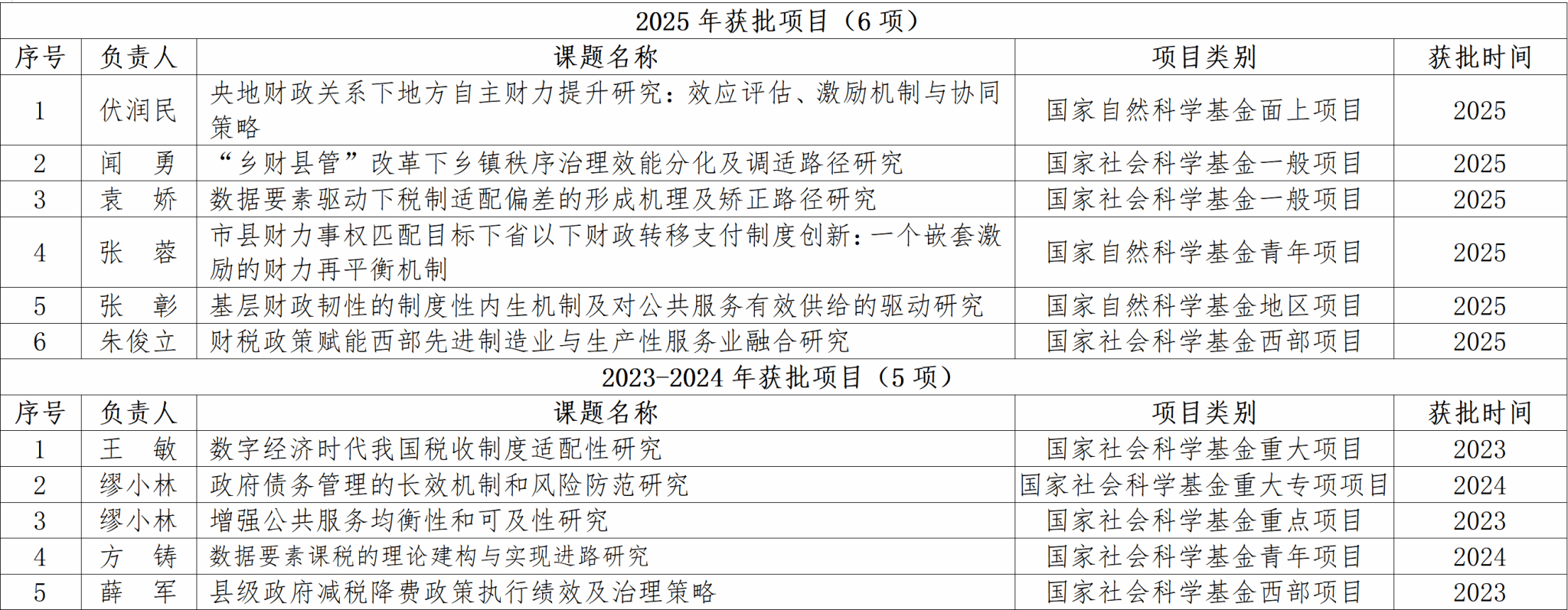 2025年,由伏润民教授带领的“地方财政与公共治理”黄大年式教师团队在科研领域再创佳绩,成功获批6项国家级课题。其中包括国家自科面上项目1项、青年项目1项、地区基金项目1项,国家社科一般项目2项、西部项目1项,充分彰显了团队扎实的科研基础和突出的创新能力。