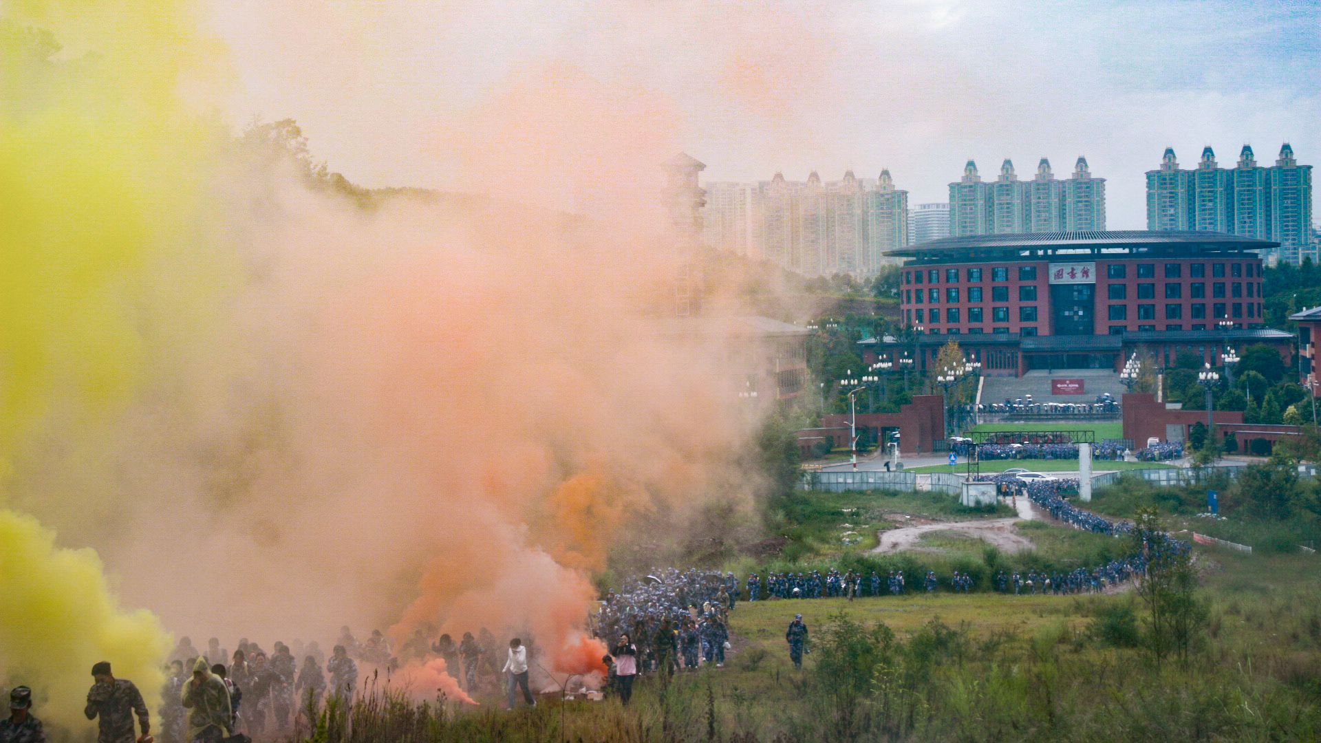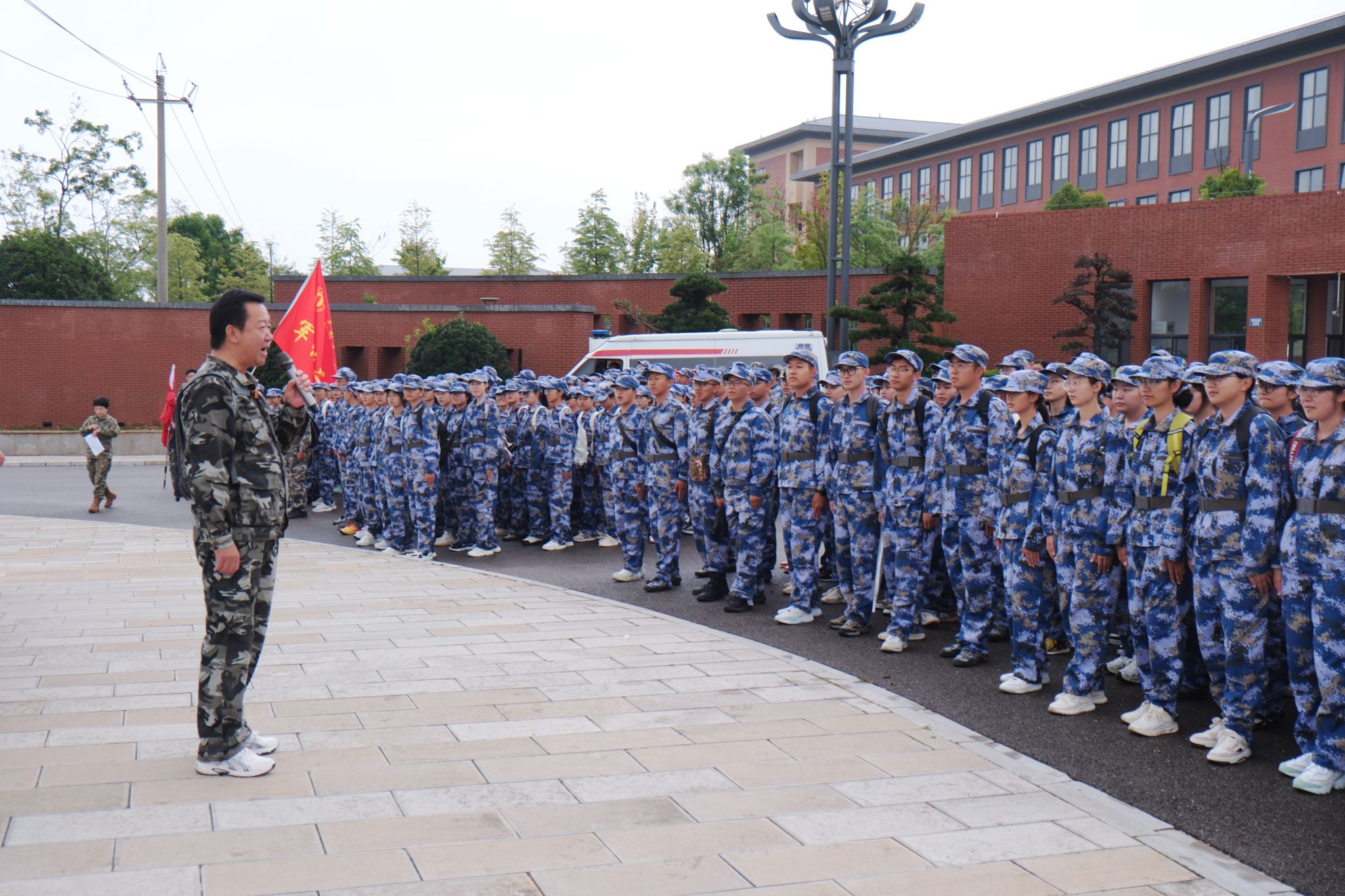 宣传部、学生处(学生工作部、武装部)、保卫处(保卫工作部)、各学院负责人和辅导员、带队教师,2025级学生军训团部分教官、参训学生共6800余人参加活动。