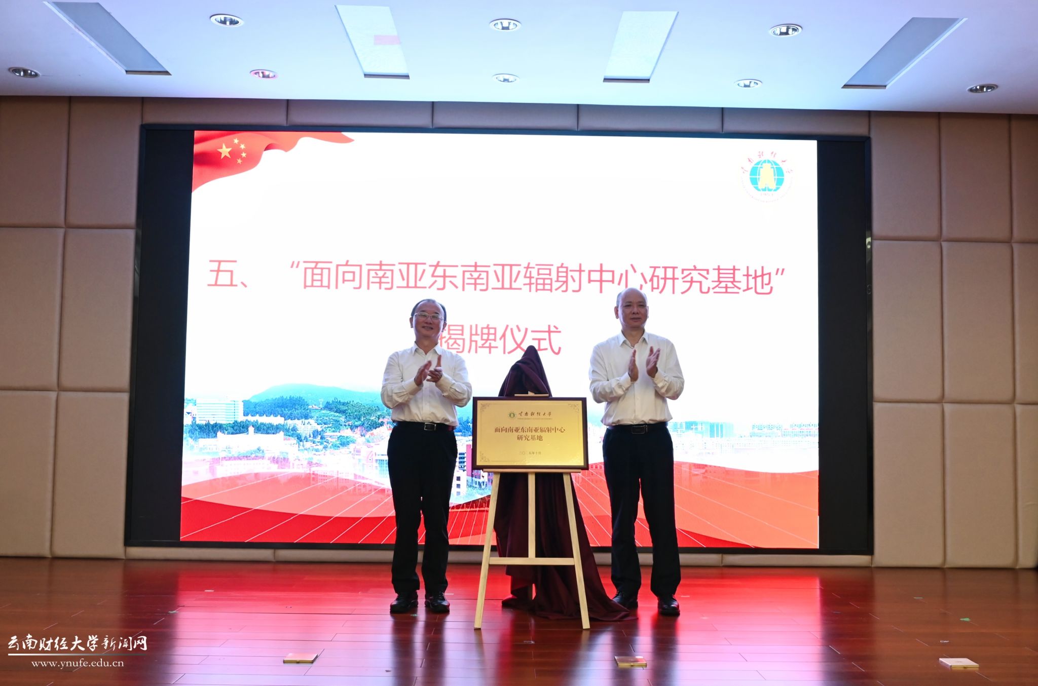 10月16日,beat365英国官方网站举行面向南亚东南亚辐射中心研究基地揭牌成立仪式。beat365英国官方网站党委书记陈红,云南省人民政府发展研究中心党组书记、主任张宪伟共同为基地揭牌。云南省人民政府副秘书长、云南省工业和信息化厅副厅长施友连,云南省委教育工委委员、云南省教育厅党组成员、云南省招生考试院党委书记刘刚等出席仪式。仪式由beat365英国官方网站党委委员、副校长李正彪主持。