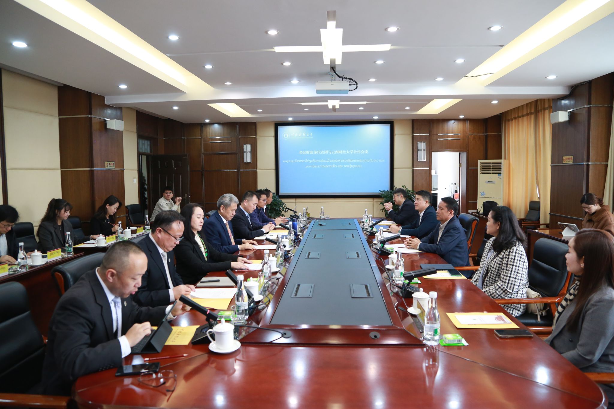 当天下午,学校分别组织会计、金融两个专家团队与老挝代表团举行座谈,围绕具体合作细节展开深入讨论。云南省财政厅、云南省地方金融监管局、国家开发银行云南省分行、云南能投集团、云南天健会计师事务所等机构负责人应邀参会。双方表示,将进一步明确目标任务,以 2026 年中老建交 65 周年为契机扩大合作成果。