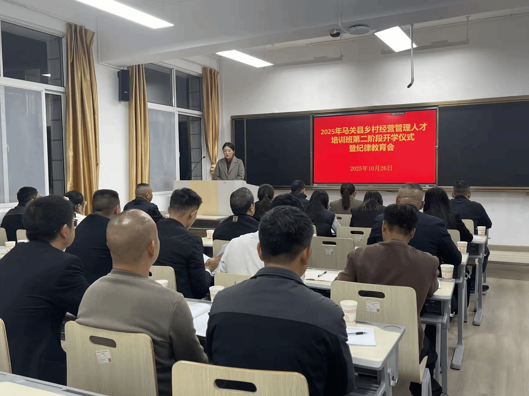开班仪式上,李姗姗为学员开展纪律教育。她表示,乡村经营管理人才培养是乡村人才振兴的重要组成部分,也是帮扶项目资产管理的迫切需要,更是帮扶马关县的现实需要。她要求全体学员要高度重视,深刻认识学习培训的重要意义;要学用结合,切实提升自己的乡村经营管理能力;要端正学风,切实做到严格要求、严肃对待。