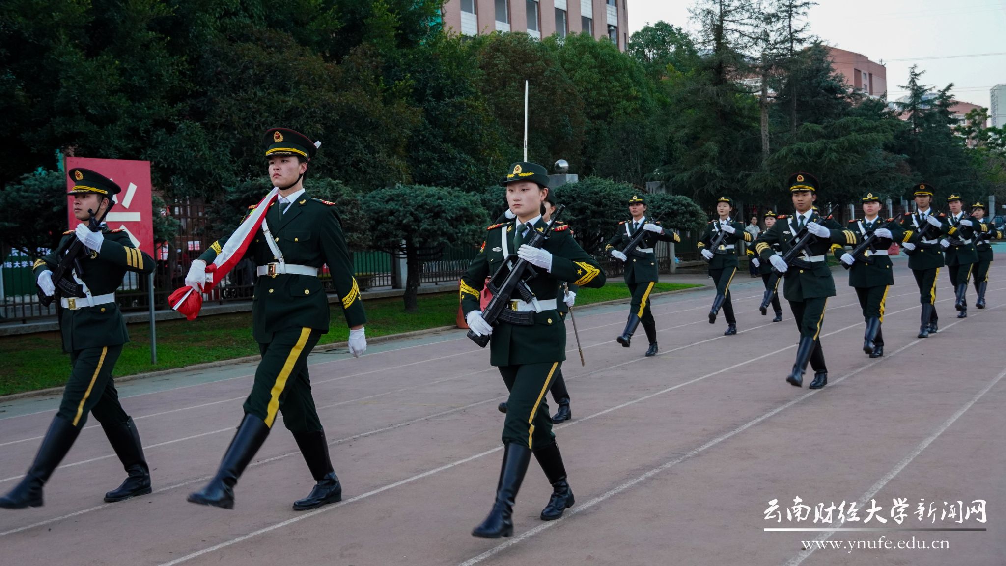 国际工商学院邓淑予同学代表全校学生向国旗献词,表达了新时代云财学子将个人理想融入国家发展、矢志奋斗的决心。