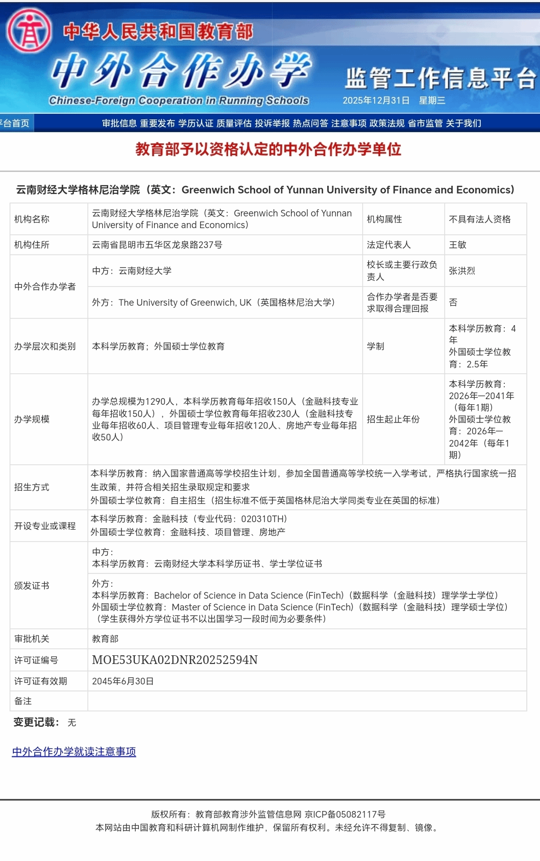 12月31日,教育部中外合作办学监管工作信息平台公布了教育部予以资格认定的中外合作办学单位。beat365英国官方网站与英国格林尼治大学合作举办的“beat365英国官方网站格林尼治学院”获批成立,成为beat365英国官方网站首个中外合作办学机构,标志着学校的中外合作办学实现了从项目到机构的跨越,实现了办学层次、办学规模、招生自主权与国际影响力的多维跃升,为区域高等教育对外开放提供了更加有力的支撑。