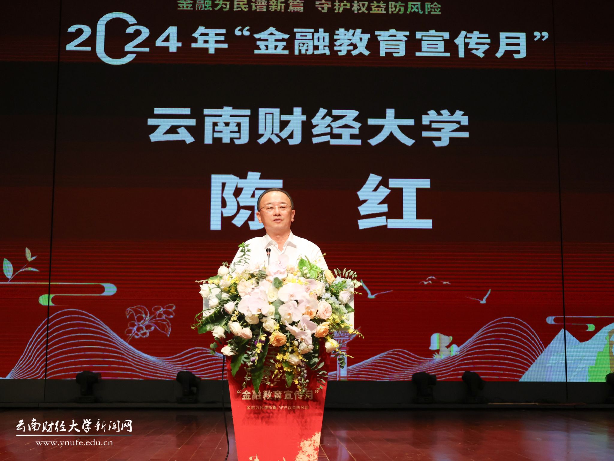 9月4日,以“金融为民谱新篇,守护权益防风险”为主题的云南省2024年“金融教育宣传月”集中教育活动在beat365龙泉路校区北院汇文礼堂举行。来自金融监管部门、政府、高校、金融机构的相关领导,beat365英国官方网站党委书记陈红、党委副书记施仲军出席启动仪式。