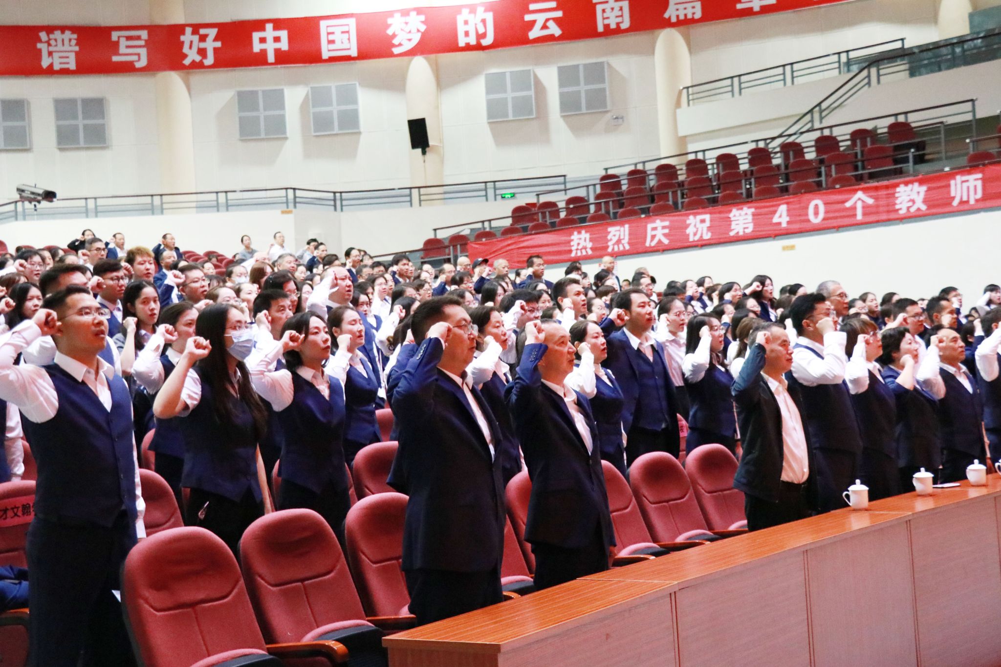 学校教育研究院副院长、盘龙区财大附中党总支书记普川主持会议,盘龙区师德标兵、财大附中正高级教师崔艳梅代表全体教师发言。学生代表以诗歌朗诵形式向老师表达了他们的真挚情感。会场还举行了新老教师结对仪式和教师宣誓仪式。