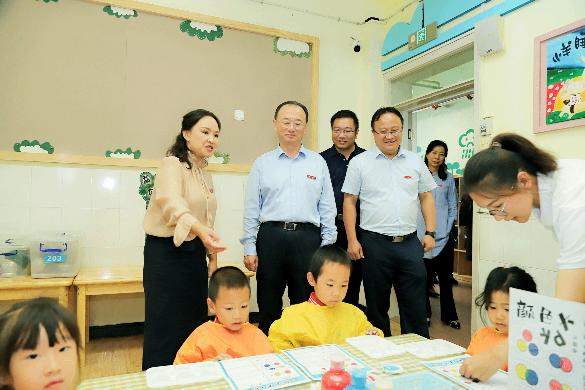 仪式结束后,陈红一行深入各班级、园区多功能馆等地实地考察了幼儿园办学情况,听取了幼儿园关于党的建设、办园理念、发展规划等情况的汇报。