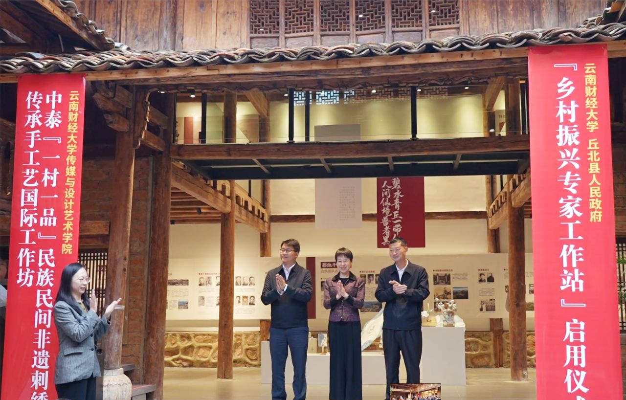 11月2日,丘北县人民政府与beat365英国官方网站乡村振兴专家工作站启用仪式暨中泰“一村一品”民族民间非遗刺绣传承手工艺国际工坊活动在丘北县普者黑举行。丘北县委副书记袁加坤、传媒与设计艺术学院长袁洪代表双方致辞。