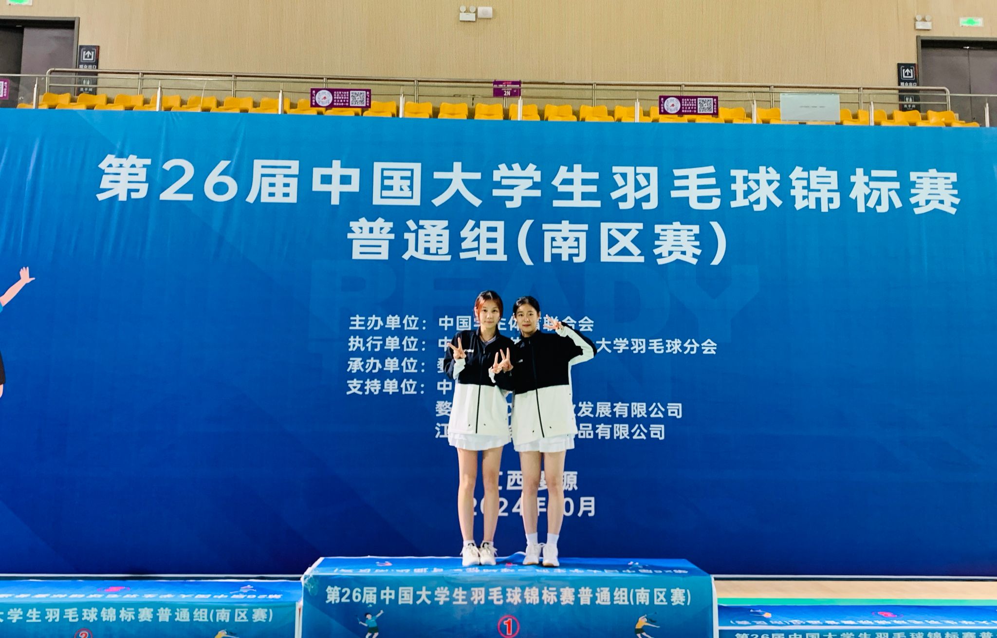 国际工商学院21级学生吴欣和会计学院23级学生林欣代表学校参赛,两名队员搭档的双打组合最终获得了本次比赛的第五名。在女单比赛中,吴欣分别战胜华中师范大学、安徽医科大学,获得女单第九名。