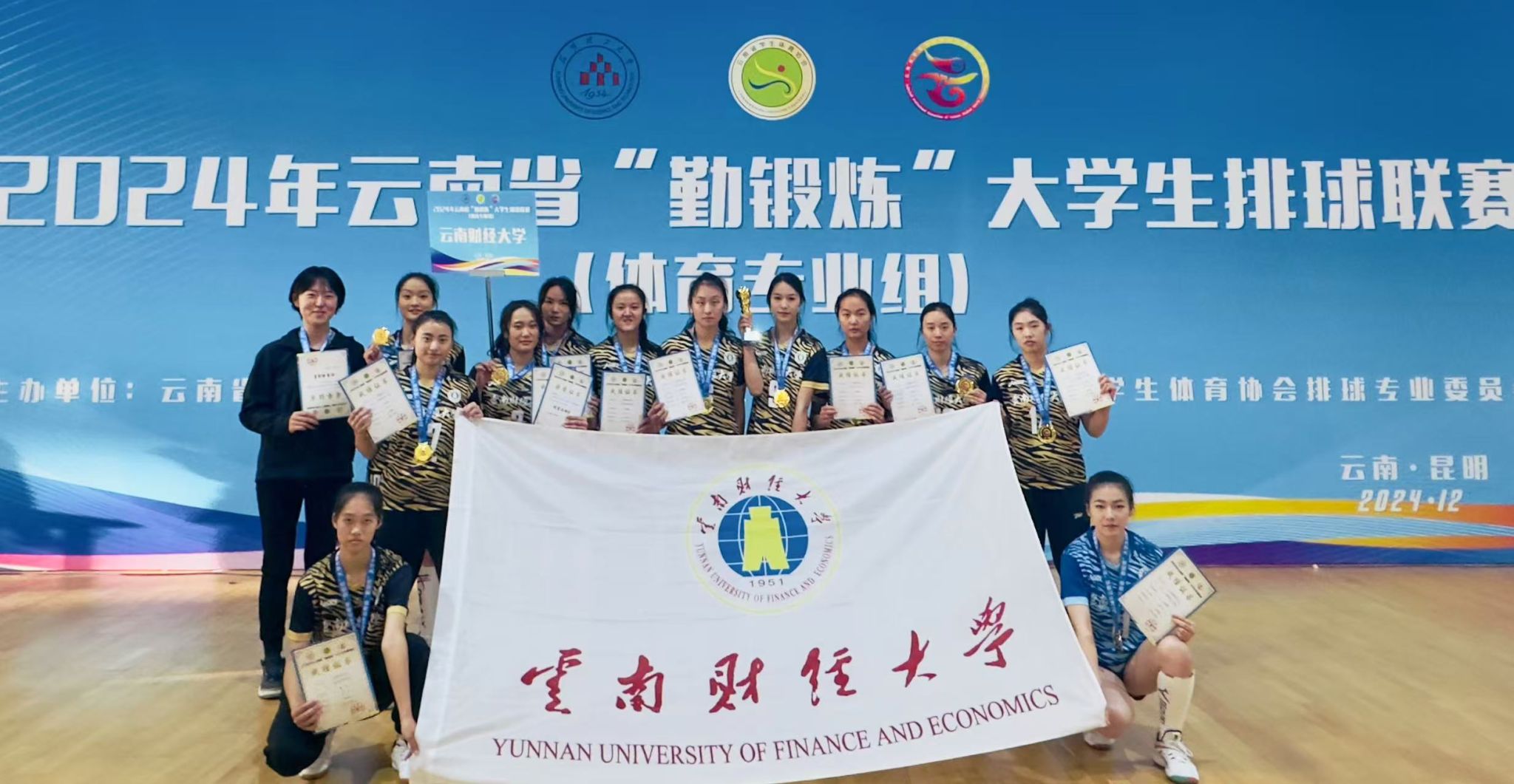 11月30日-12月8日,2024年云南省“勤锻炼”大学生排球联赛在昆明理工大学举行。历经八天的激烈角逐,beat365高水平女排队员愈战愈勇,在冠亚军争夺战中顶住压力顽强拼搏,力克东道主昆明理工大学成功卫冕,勇夺冠军。