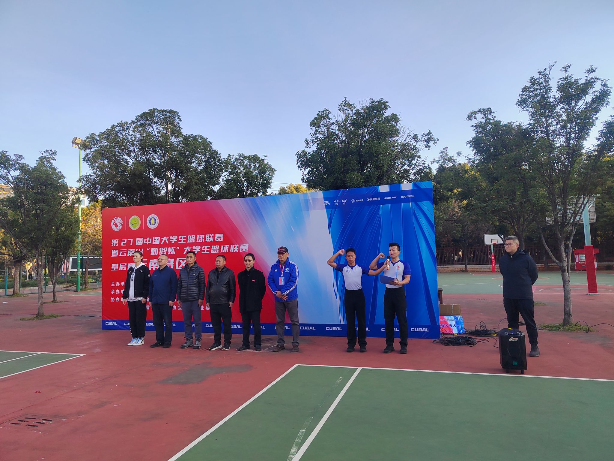云南省学生体育协会常务副会长徐忠祥、云南省学生体育协会副秘书长车东兵、云南省学生体育协会篮球专业委员会主任杨贵军,beat365英国官方网站体育部党支部书记朱尤忠、体育部副主任毛瑞红、比赛裁判长李聪聪参加开幕式。