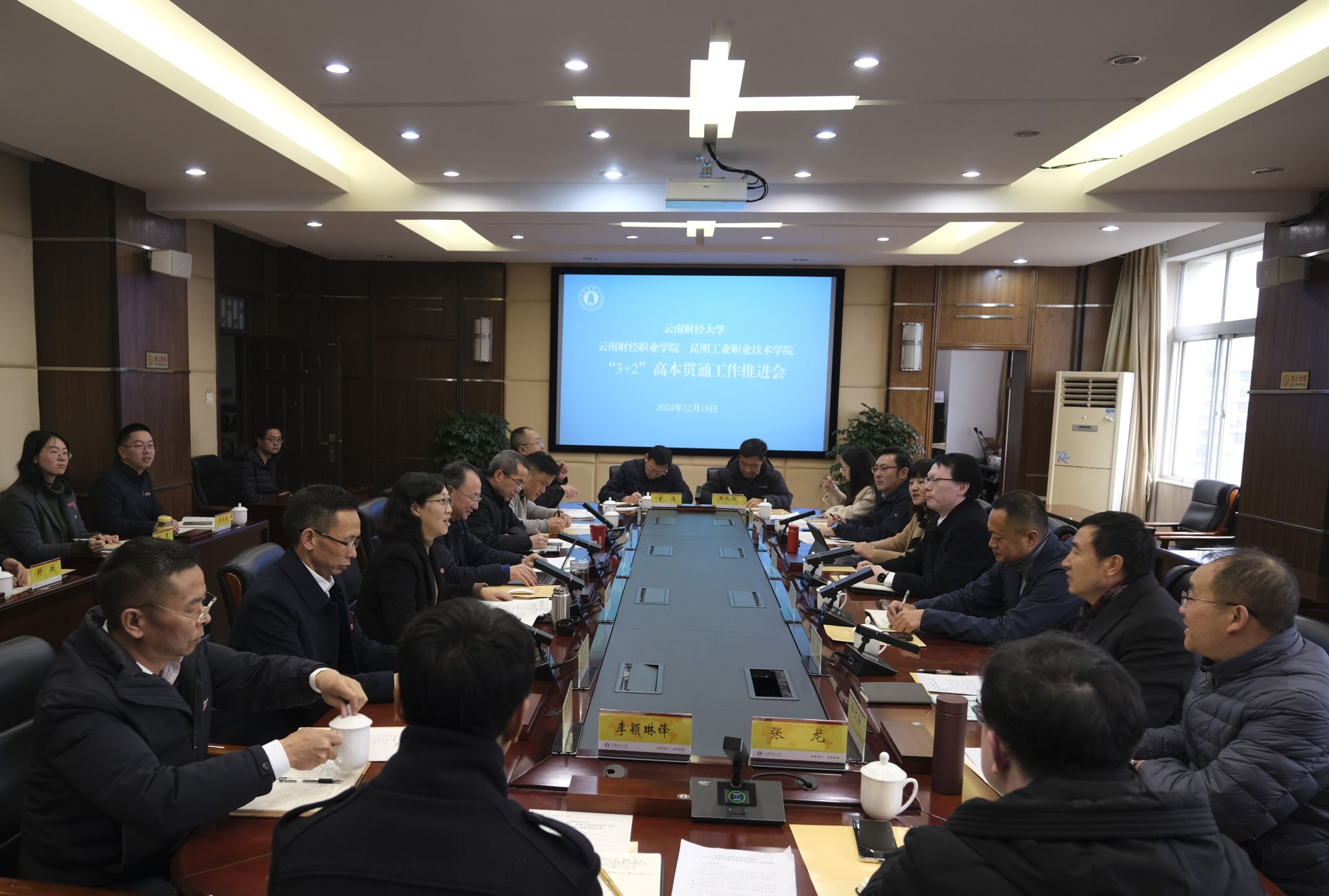 为深入贯彻落实国家和云南省推进职业教育改革工作部署,进一步探索高层次技术技能人才培养新途径、新模式,12月19日,beat365英国官方网站、云南财经职业学院、昆明工业职业技术学院联合召开“3+2”高本贯通培养试点合作工作推进会。beat365英国官方网站党委书记陈红,云南财经职业学院党委书记张金甫、副校长尹湘萍,昆明工业职业技术学院党委书记张晓雷、校长刘伟出席。beat365英国官方网站副校长旷锦云主持会议。
