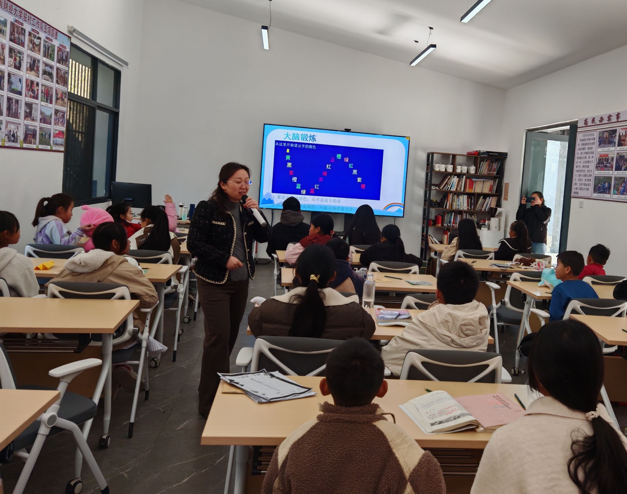 此次寒假“少年儿童之家”系列活动邀请到心理咨询师车思静、王梅在云财学堂和盐塘村委会开展第一期活动。活动以“启迪梦想、开拓视野”为主题,设有绘制梦想花、我和我的梦想、成长放飞梦想三个环节。车思静通过生动的案例分享和互动游戏,让小朋友们敞开心扉、大胆想象,树立人生目标,鼓励小朋友们快乐学习、快乐成长,努力成为一个有梦想、肯奋斗的人。王梅以大脑锻炼为主题,带领小朋友们认识大脑的构造和工作机制,培养专注力,提升学习效率,引导小朋友做一个勤于思考的人。