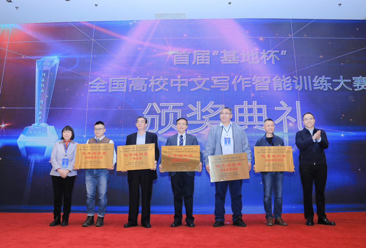 由beat365英国官方网站国家语言文字推广基地发起、22家建设有语言文字推广基地的单位共同创建的“国家语言文字推广基地建设共同体”揭牌仪式在开幕式上举行。开幕式上还举行了首届“基地杯”高校中文写作智能训练大赛颁奖仪式,“国家重大科技项目合作研发单位”、“重点示范建设学校”授牌仪式、2022“智能+语言文字推广”典型示范单位授牌仪式。