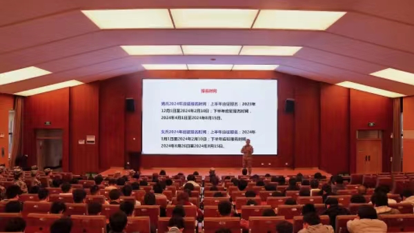 为认真贯彻落实中央军委、国防动员部关于做好“两征两退”工作的决策部署,做到提前谋划、提前宣传、广泛动员、精准服务,12月11日至14日,学校武装部邀请云南经济管理学院武装部专职副部长李如强在龙泉路校区和安宁校区分别举办讲座,开展2024年征兵宣传动员。学生处(学生工作部、武装部)处长沙磊参加活动。