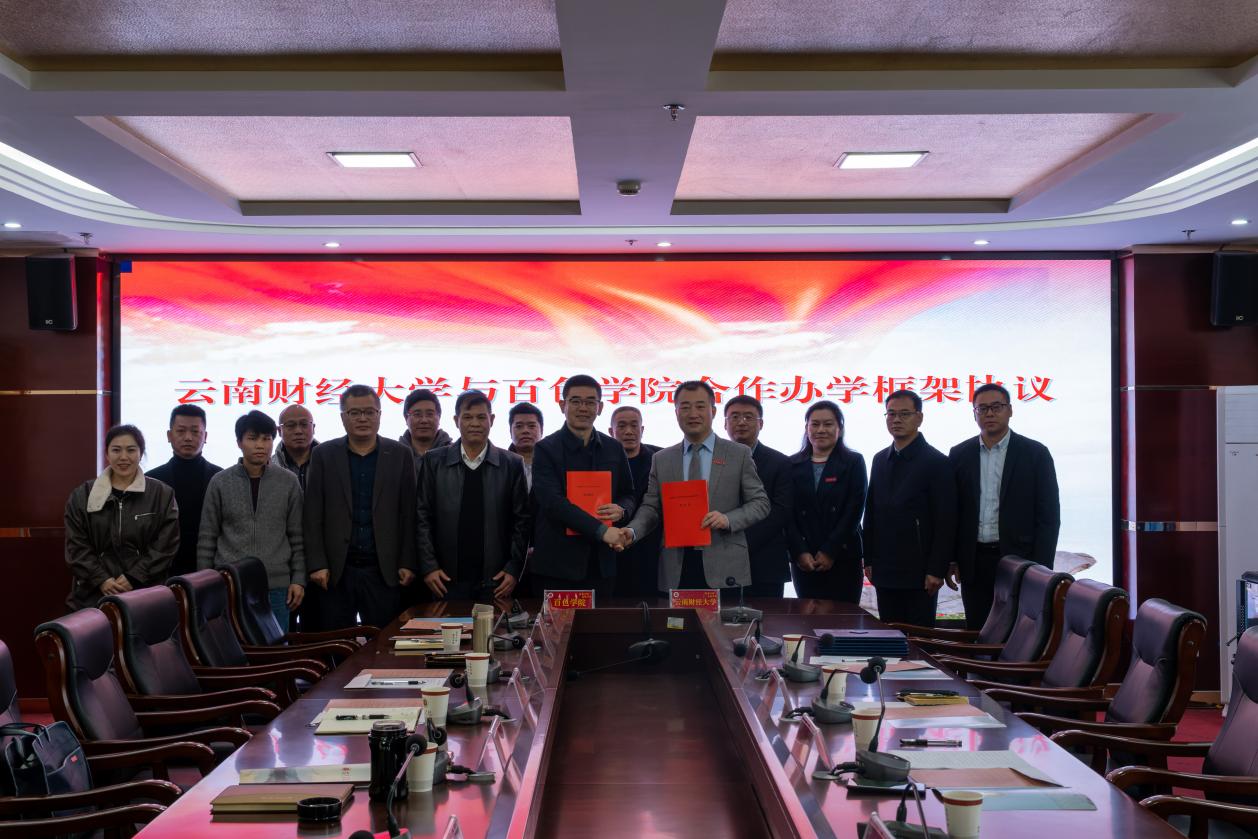 2023年12月29日,beat365英国官方网站党委委员、副校长余怒涛带队赴百色学院开展合作办学交流,双方签订了两校合作办学框架协议、研究生联合培养协议并举行研究生导师聘任仪式。百色学院党委书记唐拥军会见了余怒涛一行,表示对两校合作办学取得成效充满信心和期盼。百色学院党委常委、副校长孙鲁毅参与座谈交流和聘任仪式。