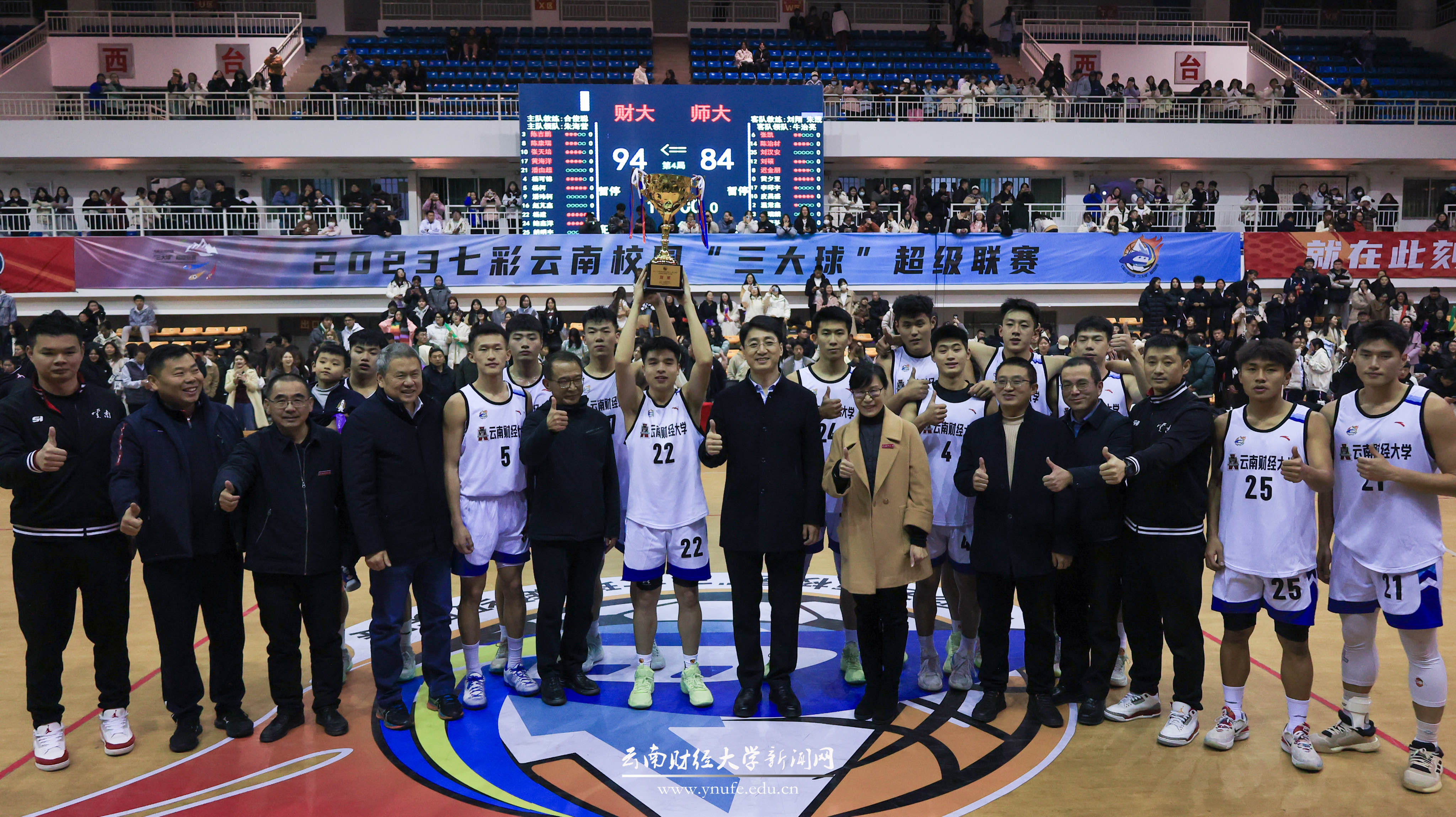 1月3日晚,第26届中国大学生篮球(一级)联赛云南赛区冠军争夺赛暨闭幕式在beat365南院体育馆主馆举行,beat365高水平男子篮球队对阵云南师范大学队并最终以94:84战胜对手,夺得总冠军,实现队史第8冠。云南省教育厅厅长、党组书记,省委教育工委副书记王云霏为beat365获奖运动队颁奖。