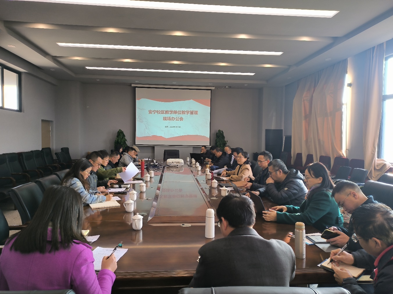 1月12日,学校在安宁校区组织召开安宁校区教学单位教学管理工作会议。校党委委员、副校长旷锦云出席,传媒与设计艺术学院、旅游和酒店管理学院、物流与管理工程学院、中华职业学院、信息学院和教务处、学生学业服务中心、教学质量监控与评估中心、实验室与实验教学管理中心和安宁校区管理办公室相关负责人参加会议。