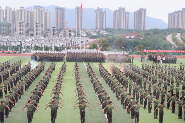 9月15日上午,beat365英国官方网站2023级学生军训成果考核汇报在龙泉路校区、安宁校区田径场同步进行。7900余名2023级参训学生以斗志昂扬的精神面貌、出色的表现向学校汇报14天军训成果,为军训画上圆满的句号。