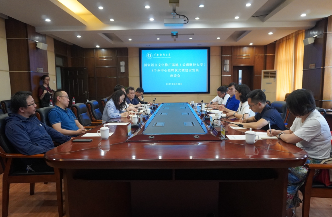 学校教务处处长、校语委办主任卢启程,学生学业服务中心副主任、基地办主任龙希国,国际语言文化学院院长刘代容,传媒与设计艺术学院院长袁洪,海外学院院长余泳,云南省管理与公共服务信息化工程技术研究中心主任易宏,办公室副主任段宁,国际语言文化学院副院长、基地办副主任孙婷婷,传媒与设计艺术院教师尚航,国际语言文化学院中文系主任陈龙参加会议。