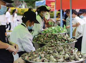 活动现场,同学们积极参与,享受粽子的美味,精心挑选着心仪的彩绳,活动共为师生送出一万二千余枚香粽和三千余条彩绳。