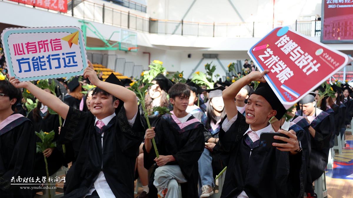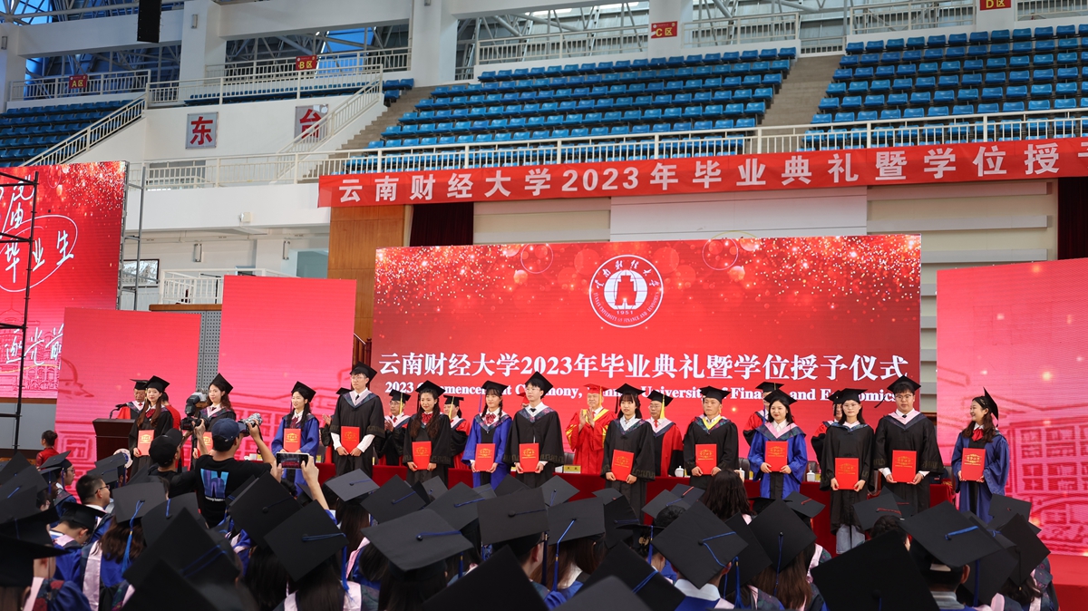 “以青春之我,创建青春之家庭,青春之国家,青春之民族,青春之人类,青春之地球,青春之宇宙,资以乐其无涯之生。”师生代表在典礼上朗诵了李大钊先生的散文《青春》节选,表达了毕业生们秉承云财校训、弘扬云财精神、立志民族复兴、勇担时代重任的青年心声。