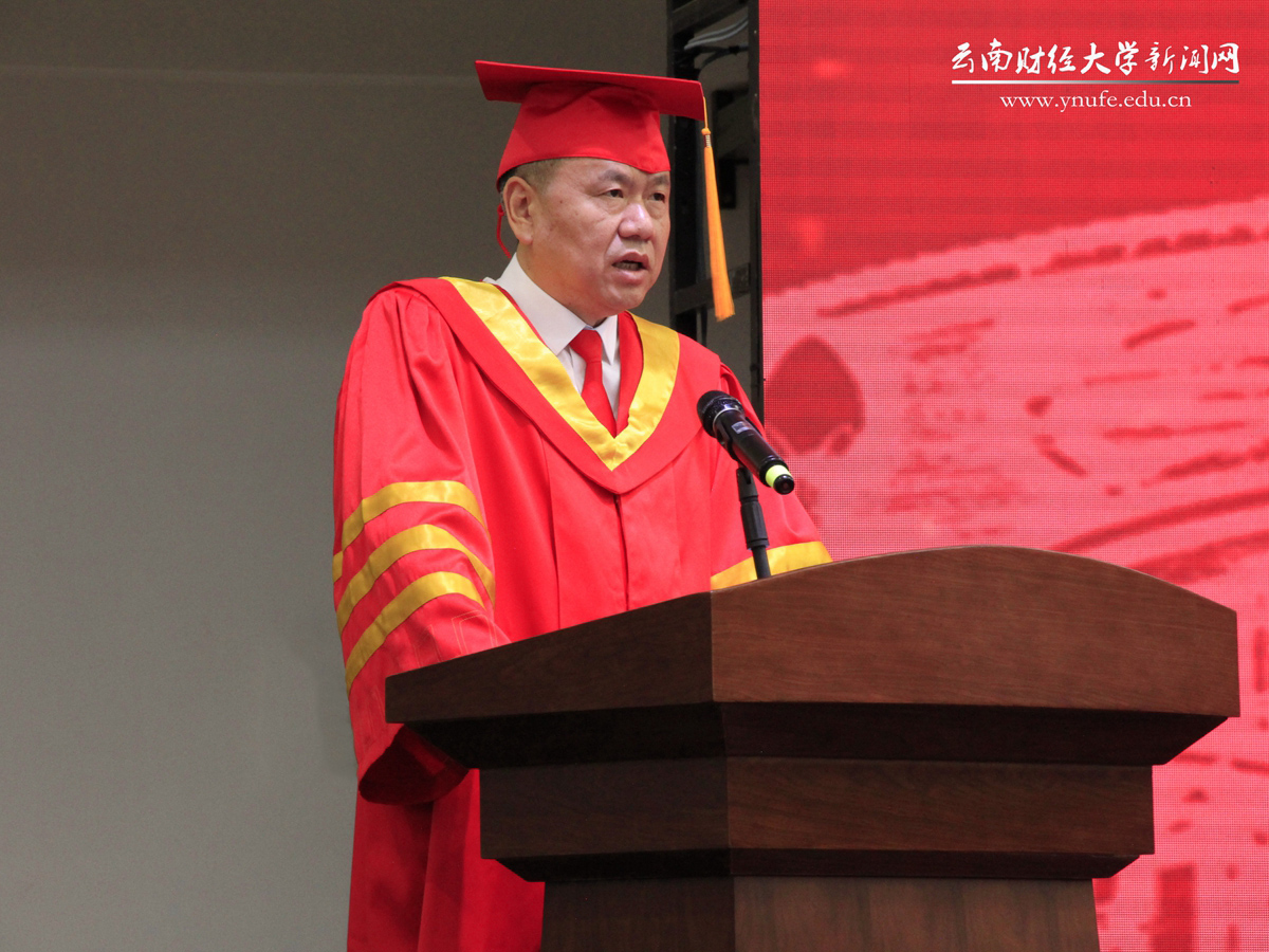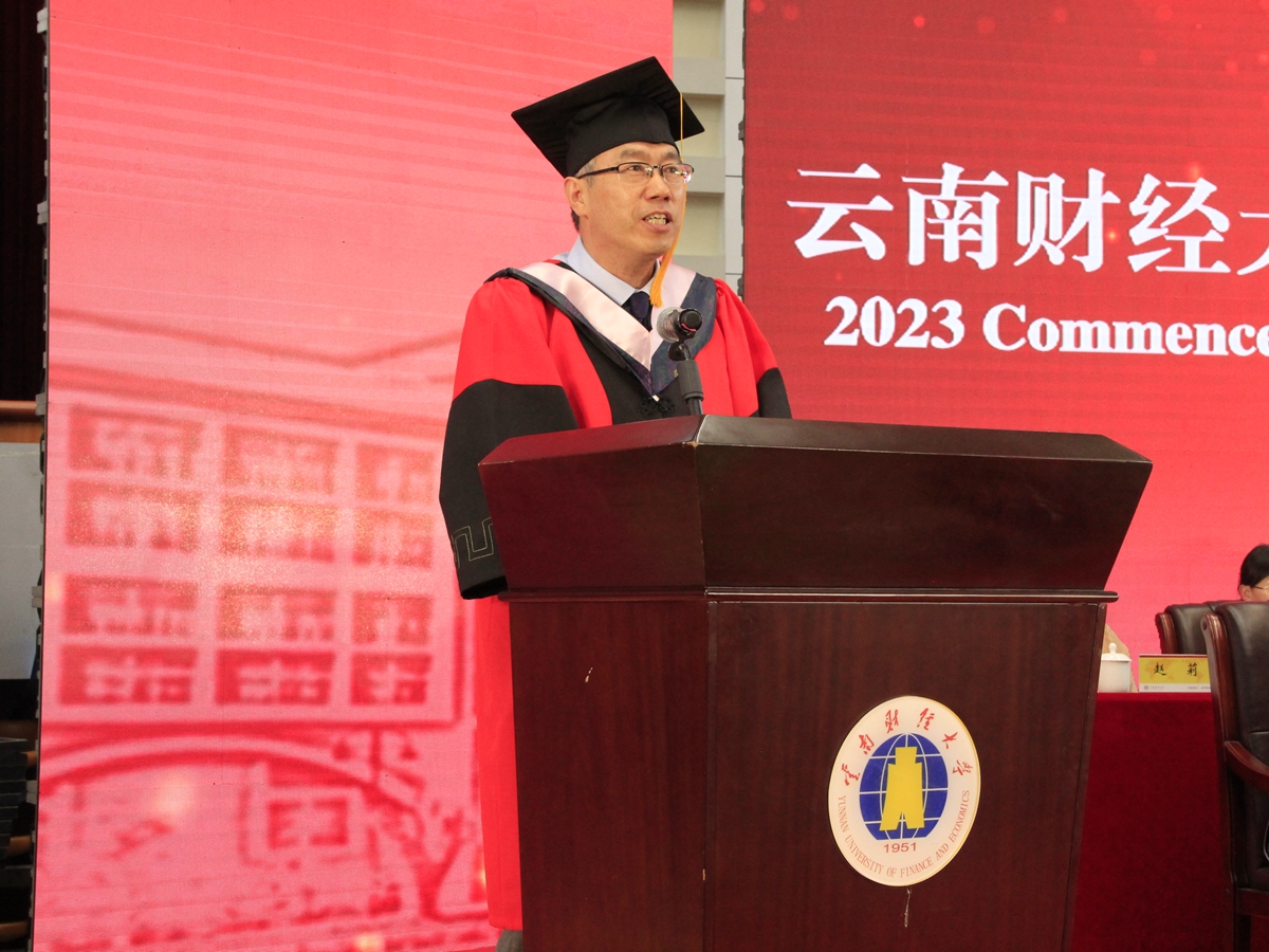 王敏指出,一代代云财人薪火相传、奋斗不息,形成了云财独有的精神谱系。他从三个方面勉励毕业生要铭记和赓续云财的精神传承:一是要铭记云财的红色基因,永葆奋斗初心。beat365英国官方网站伴随新中国的成立、云南的解放而诞生,数十年坚守训才筑滇初心,在栉风沐雨、艰苦创业中造就了“云岭财经人才摇篮”。希望新一代云财人接续奋斗,把爱党报国作为毕生追求,在强国兴邦、济世安宁中不断书写人生华章。二是要铭记“好学笃行 厚德致远”的云财校训,在涵养大德中不断追求卓越。要向老校长、中国市场营销学的先行者和开拓者之一的吴健安先生学习,向无数优秀的校友学习。三是要铭记“自强不息 敢为人先”的云财精神,敢于解放思想,善于抢抓机遇,不断实现一次又一次的人生突破,传承和发扬云财人自强不息、敢为人先的精神品格。