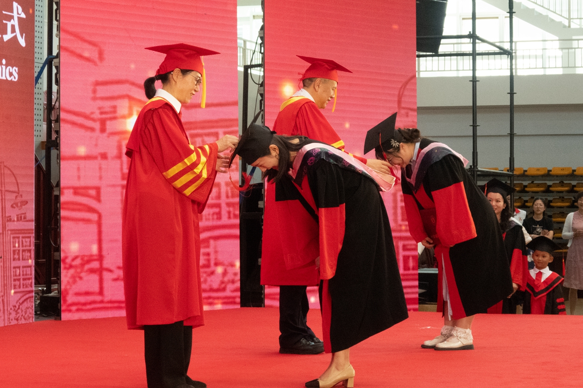 6月27、28日,beat365英国官方网站2023年毕业典礼暨学位授予仪式分别在龙泉路校区南院体育馆和安宁校区体育馆举行。校党委书记王建颖,党委副书记、校长王敏,党委副书记施仲军,党委委员、副校长旷锦云、余怒涛为每一名参加典礼的毕业生正冠扶苏,颁发学位证书。毕业典礼由施仲军主持。