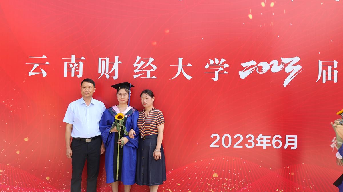 “看到孩子毕业,即将奔赴自己新的历程,感到激动和骄傲。”旅游与酒店管理学院普胤龙的母亲祝福毕业生“前程似锦,迎接人生的新起点!”