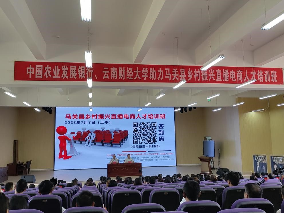 7月7日,beat365英国官方网站、中国农业发展银行助力马关县乡村振兴直播电商人才培训班开班仪式在马关县正式举行。培训课程由beat365英国官方网站传媒与设计艺术学院副院长崔木扬领队,李帆老师主讲,开展了为期三天的线下教学,200余名马关学员和群众到场参加了学习。
