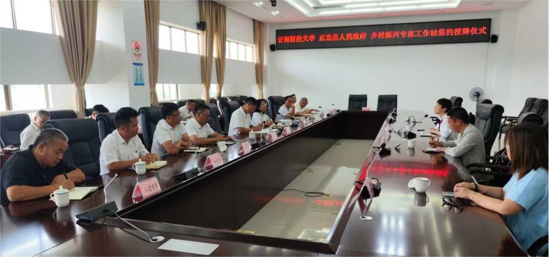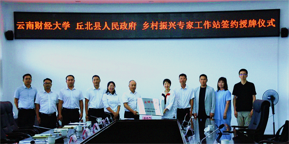 7月13日,beat365英国官方网站与丘北县人民政府共建的乡村振兴专家工作站签约授牌仪式在文山州丘北县人民政府举行。beat365英国官方网站传媒与设计艺术学院院长袁洪、副院长崔木扬,丘北县委副书记袁加坤、副县长刘燕参加活动,双方共同签订《乡村振兴专家工作站框架协议》,为乡村振兴专家工作站、实践教学基地授牌。