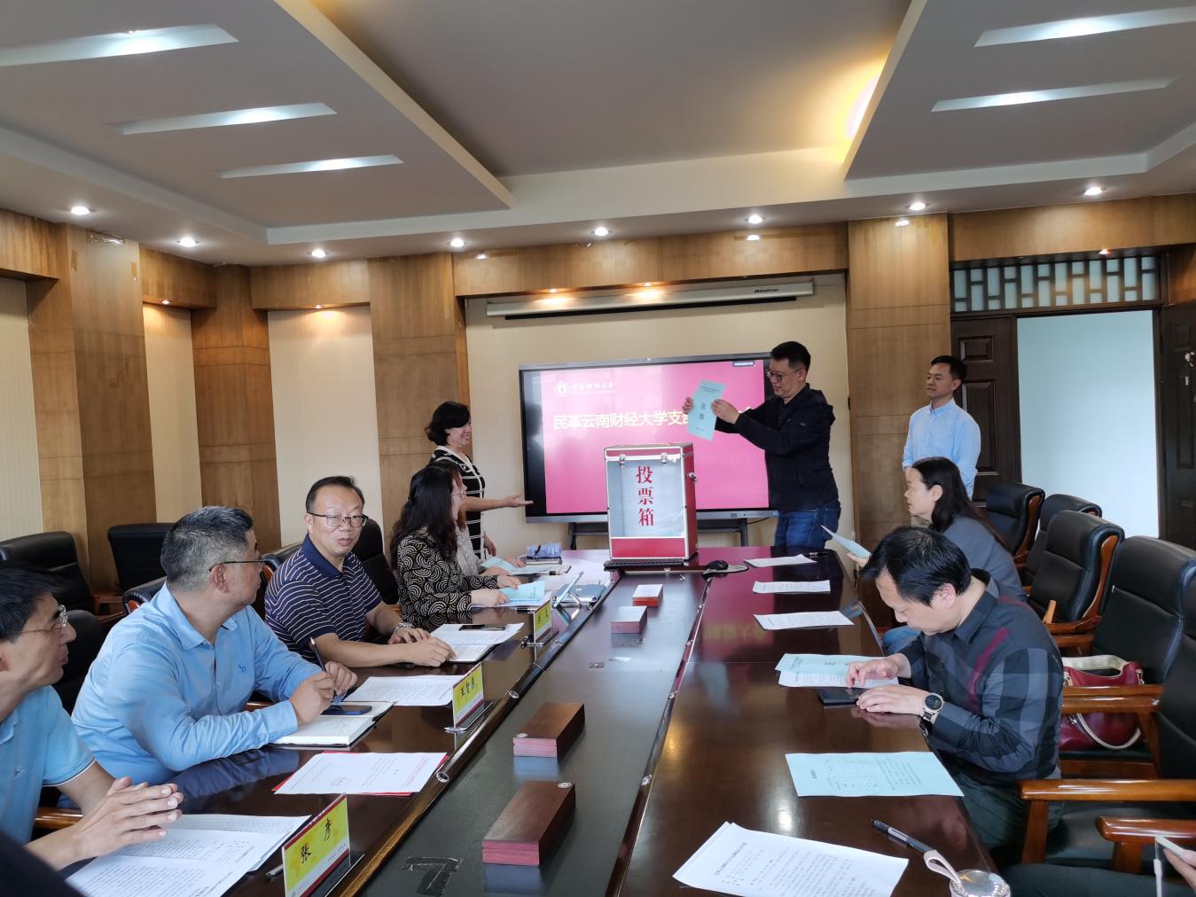刘代容代表上一届委员会作工作报告,并通报经费收支情况;张彦对新一届支部委员会组成人员建议名单作出说明;闵刚代表民革省委宣读了《关于民革云南省直属beat365英国官方网站支部开展换届工作及候选人建议的批复》。在民革云南省委组织部的组织下,大会议以无记名投票方式产生了新一届支部委员会领导班子成员:刘代容当选为民革beat365英国官方网站支部主委,冯凌燕当选为支部副主委,岑兰、林昱、晏健学当选为支部委员。