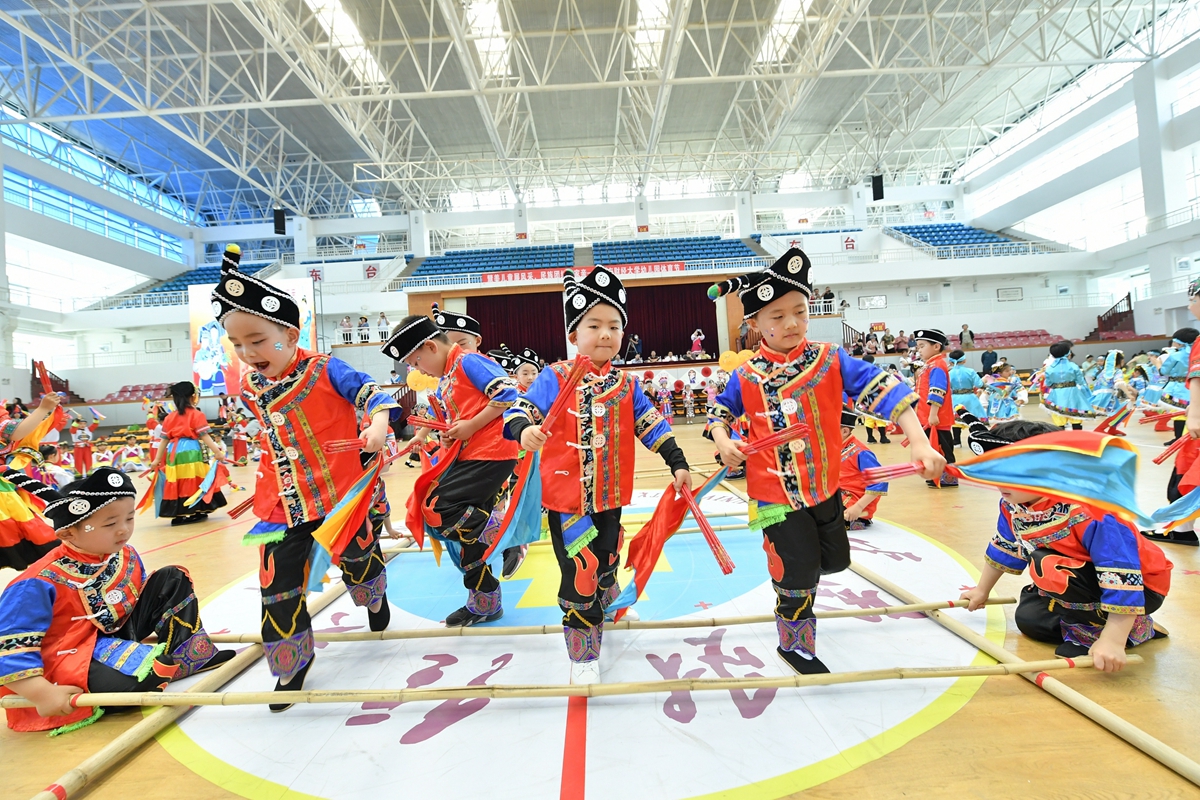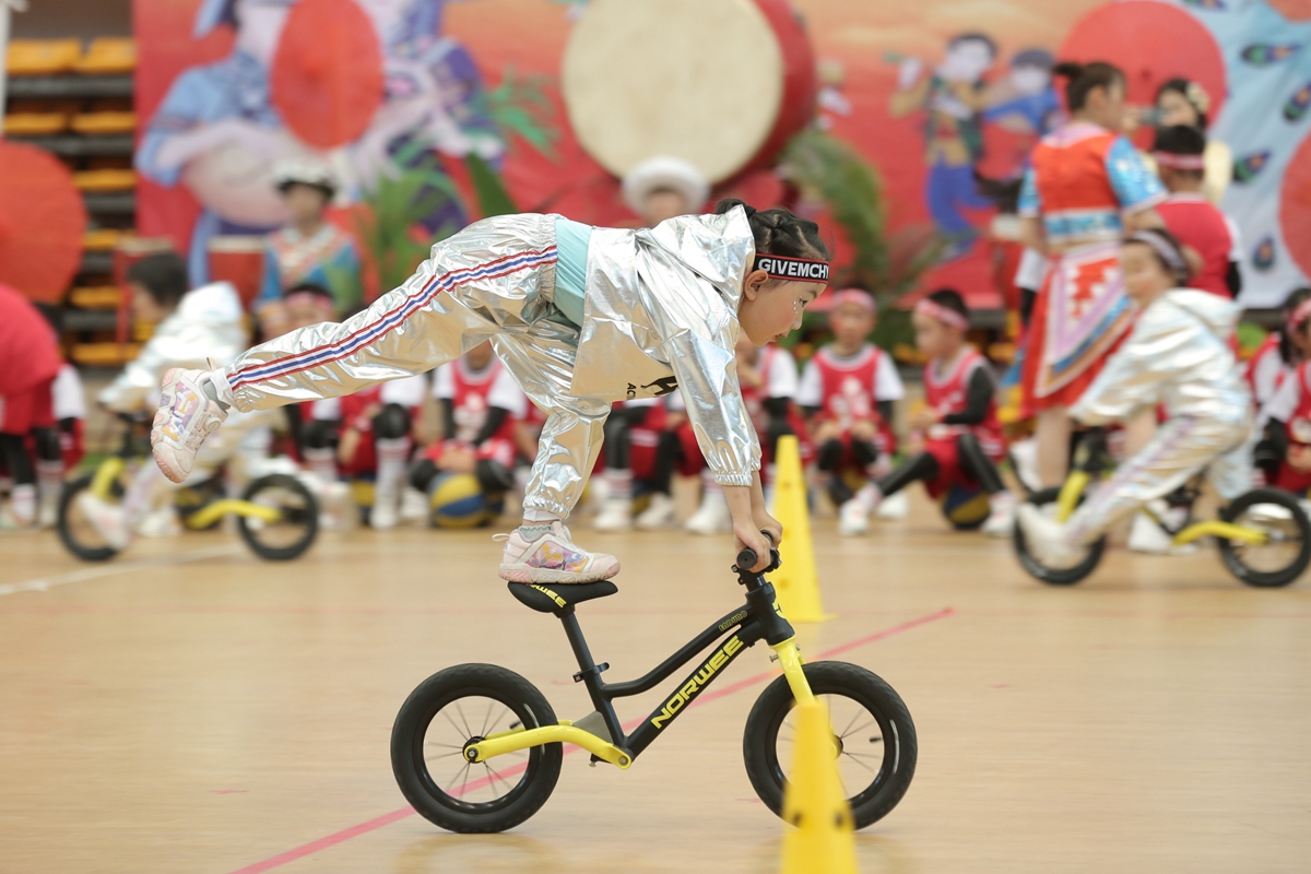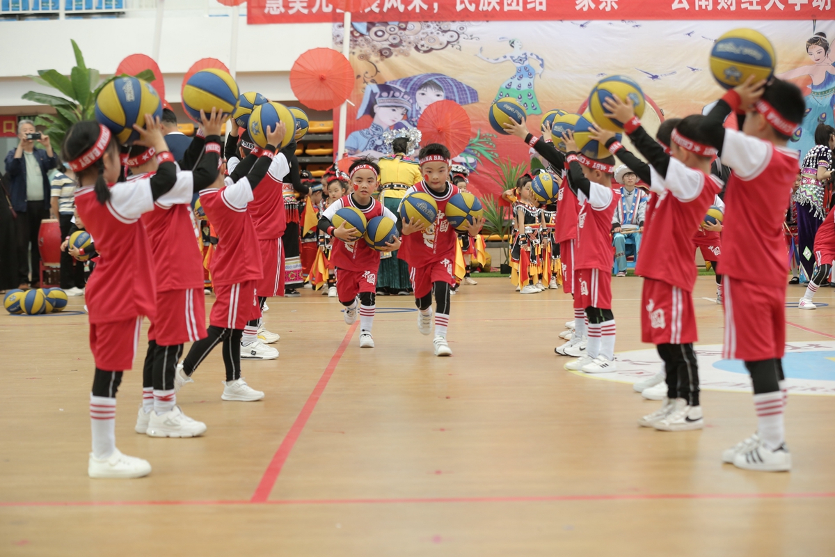 孩子们个个精神饱满、积极投入,分别展示了纳西族、景颇族、彝族、哈尼族、傣族等少数民族的幼儿早操;教师节目《威风霓裳》展现了体育精神;幼儿篮球、滑步车、花样跳绳等特色体育节目的展示赢得了现场观众的热烈掌声。