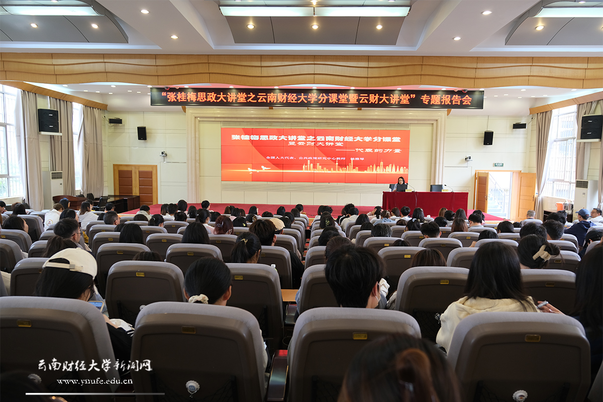 为弘扬榜样力量,打造“行走的思政课、云端的思政课、智慧的思政课、润心的思政课”,5月12日下午,张桂梅思政大讲堂之beat365英国官方网站分课堂暨云财大讲堂专题报告会在凌云楼国际学术报告厅举行。全国人大代表、beat365英国官方网站公共政策研究中心副主任杨雅琴教授,云南省政协民族和宗教委员会副主任、beat365英国官方网站科学技术处处长段云龙教授应邀与师生交流分享履行人大代表和政协委员职责的心得体会。报告会由校党委委员、统战部部长朱文主持。