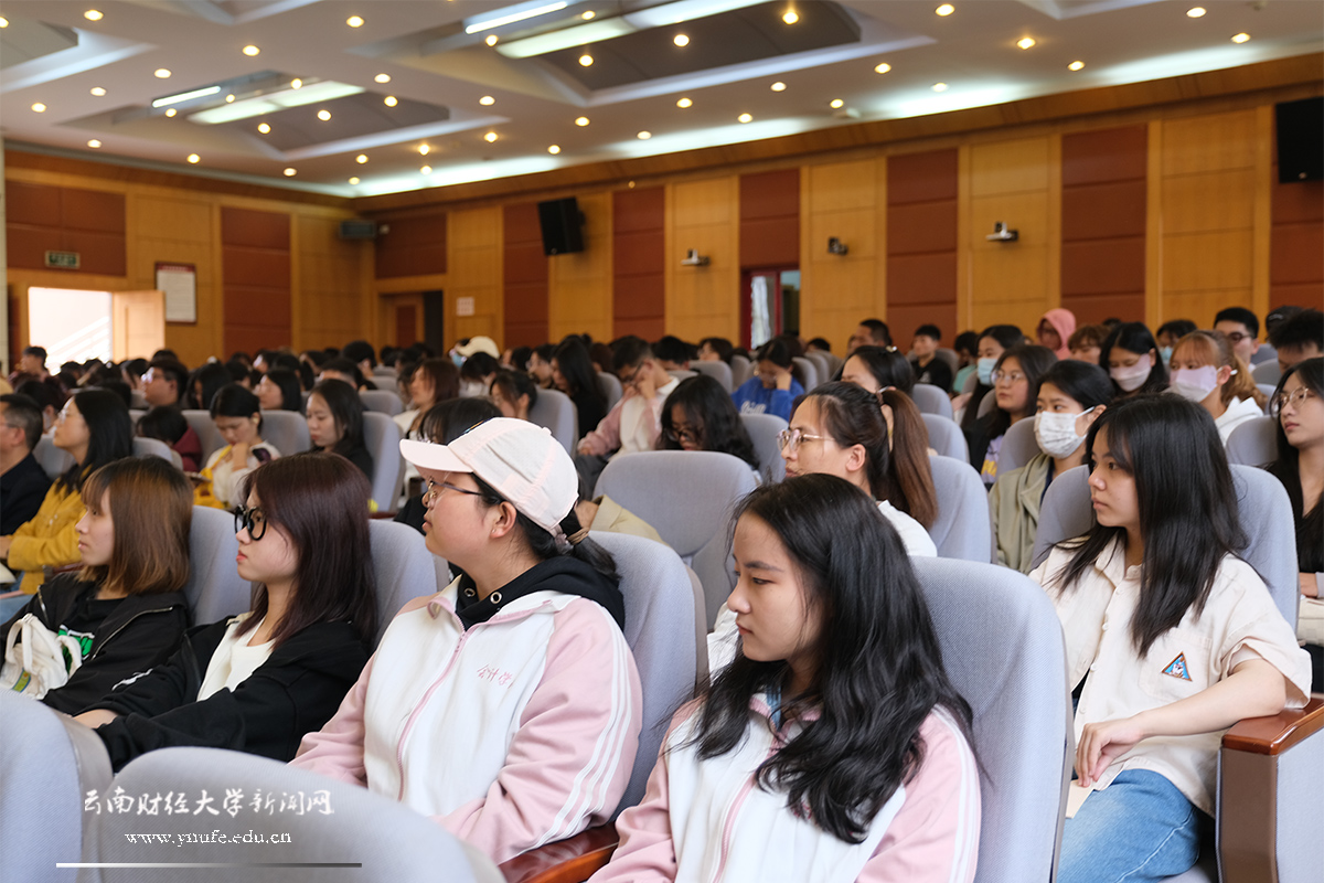“在今年的人民代表大会上,有一句话让我心情久久激动、难以平静:中华民族伟大复兴进入了不可逆转的历史进程!”杨雅琴阐释了习近平总书记关于我国未来发展的谋划,进而向在座的师生提出:“作为一所地处祖国西南的财经类高校,作为财经高校的师生,我们如何主动融入到这场伟大复兴之中?”对于这个问题的回答,她向师生提出五点建议:要永远听党话、跟党走;要锻炼身体,强健体魄;要读万卷书,用专业知识武装自己;要行万里路,用自己的脚步去丈量美丽伟大的祖国;要以更优秀的自己服务国家社会经济发展。
