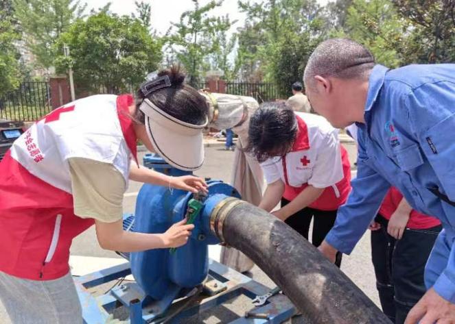 防灾防汛演练环节,后勤工作人员向同学们演示了防洪挡板、排水机的安装并讲解具体用途,志愿者们参与搬运、安放沙袋和路障,安装排水机,在了解应急防洪知识的同时也深切感受到学校维护平安校园的努力与不易。